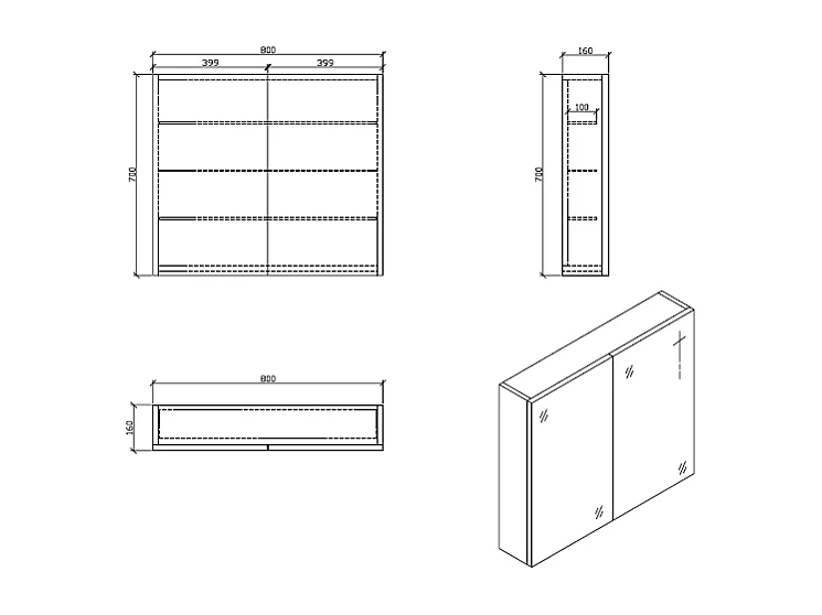 Armario espejo baño 80cm MONTADO SIENA Roble Claro