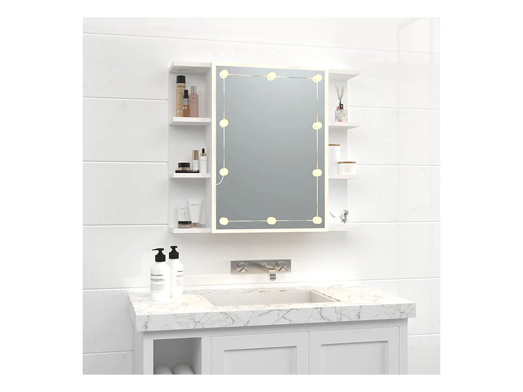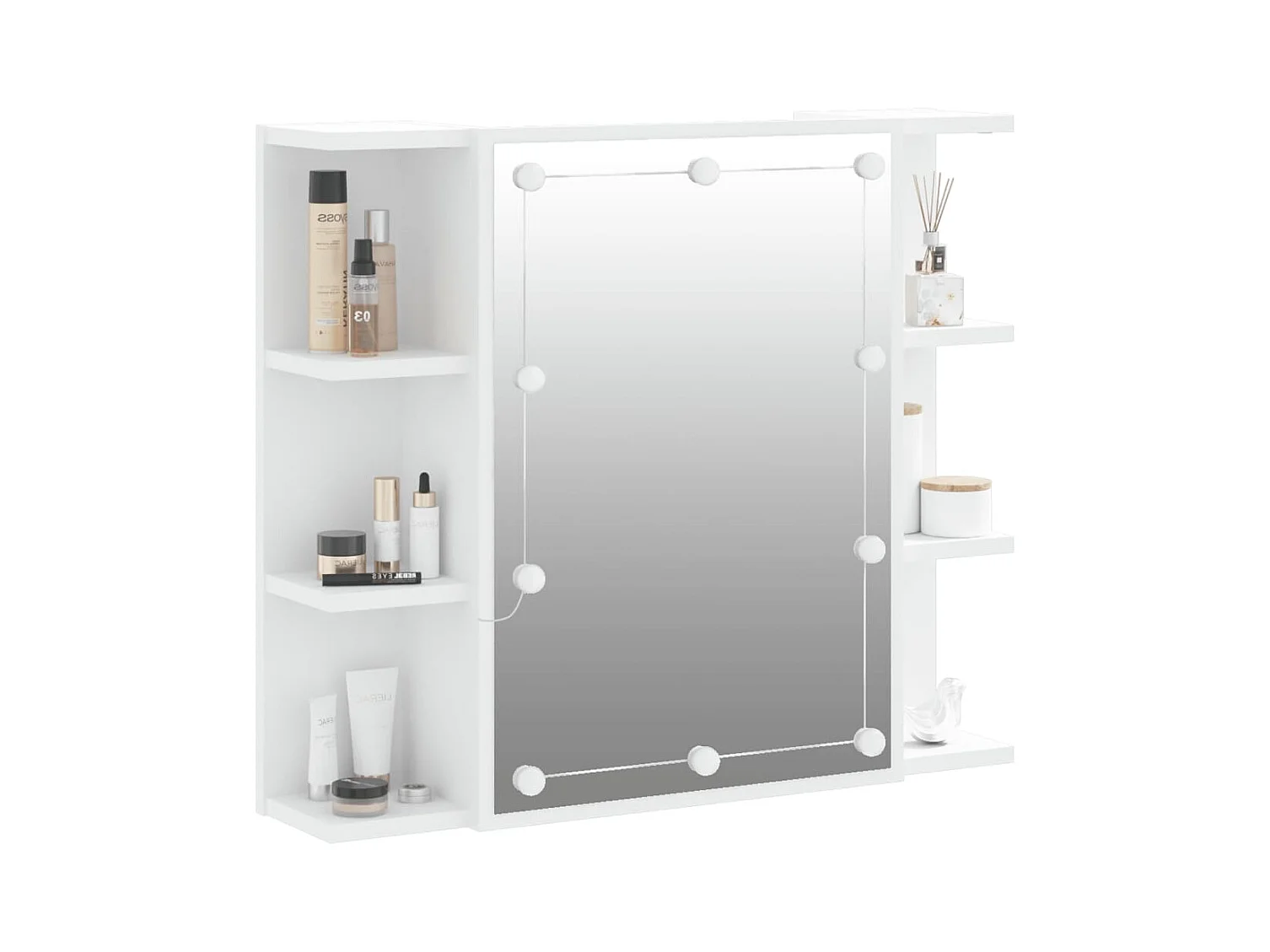 Armario espejo de baño con luz LED acrílico blanco 80x12x45 cm ES131050