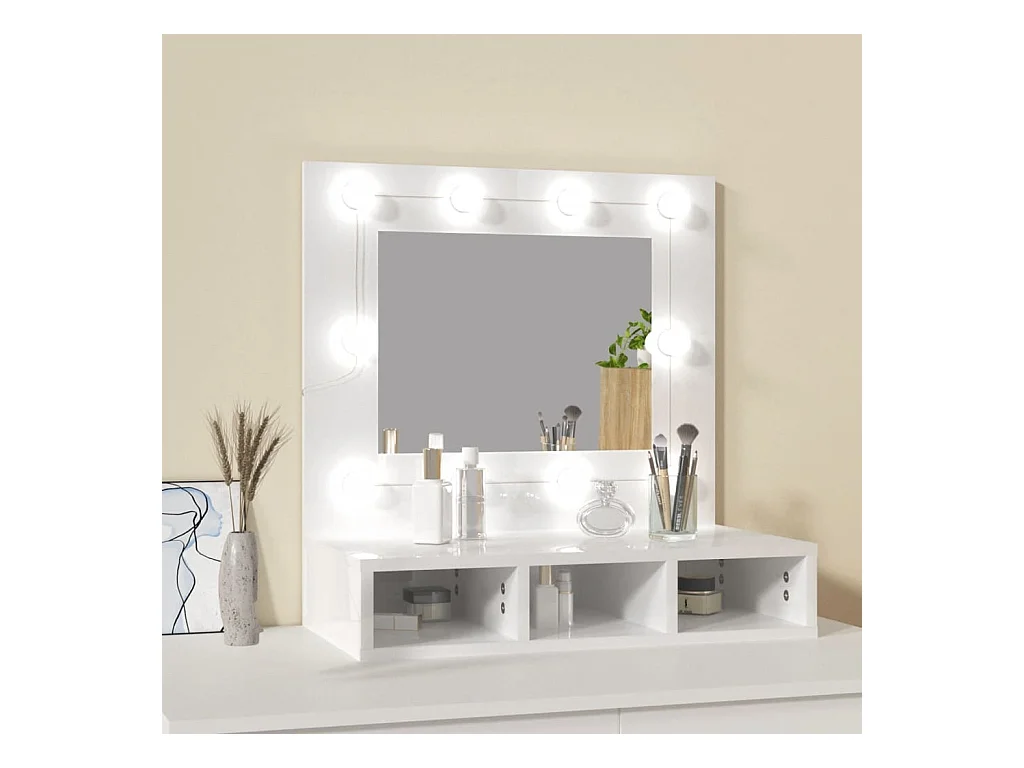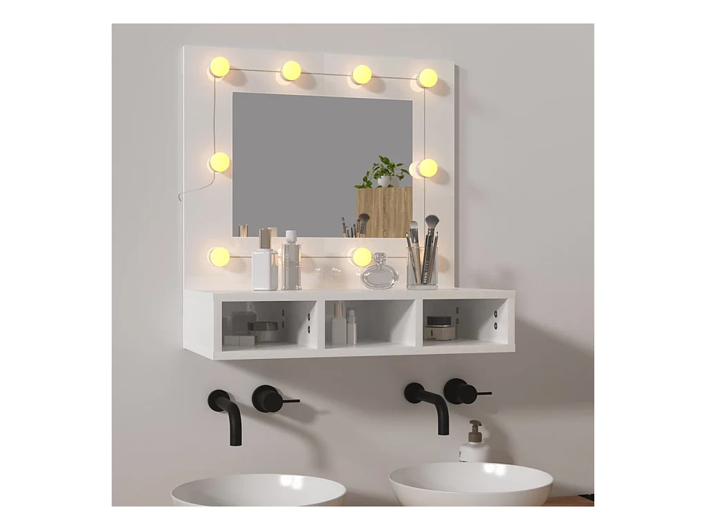 Armario espejo con LED Blanco brillo 60x31,5x62 cm