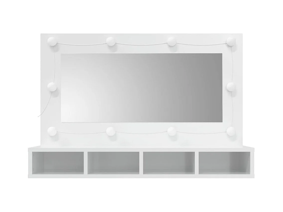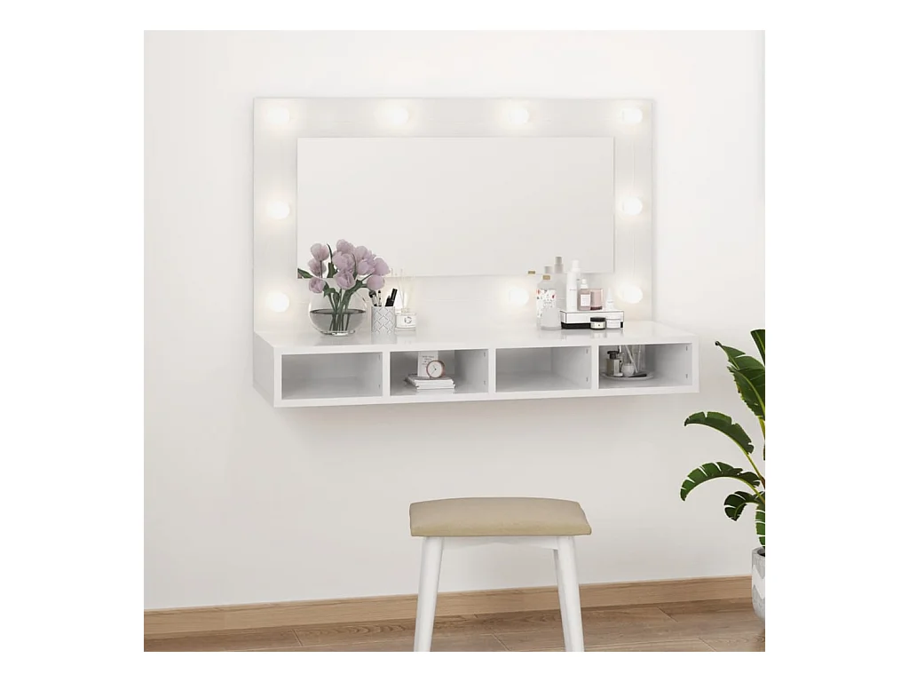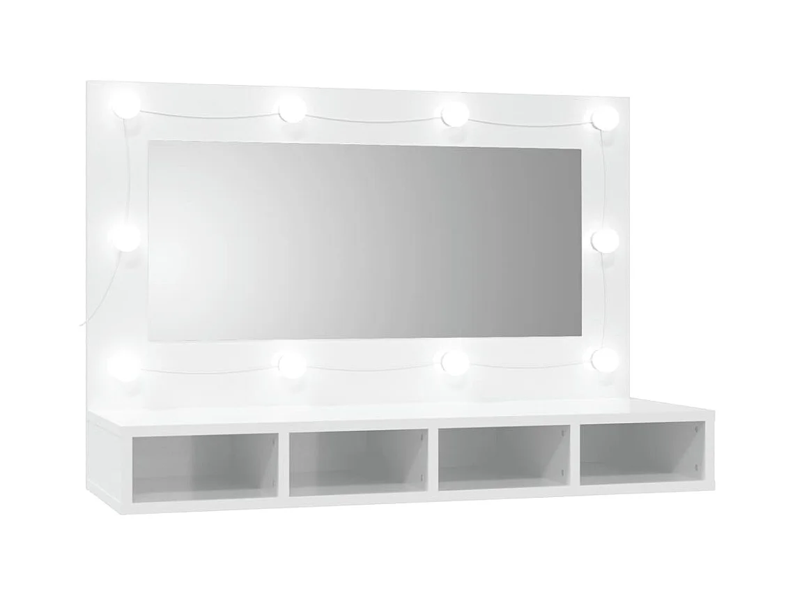 Mueble de baño con espejo LED 89x14x62cm Blanco brillo