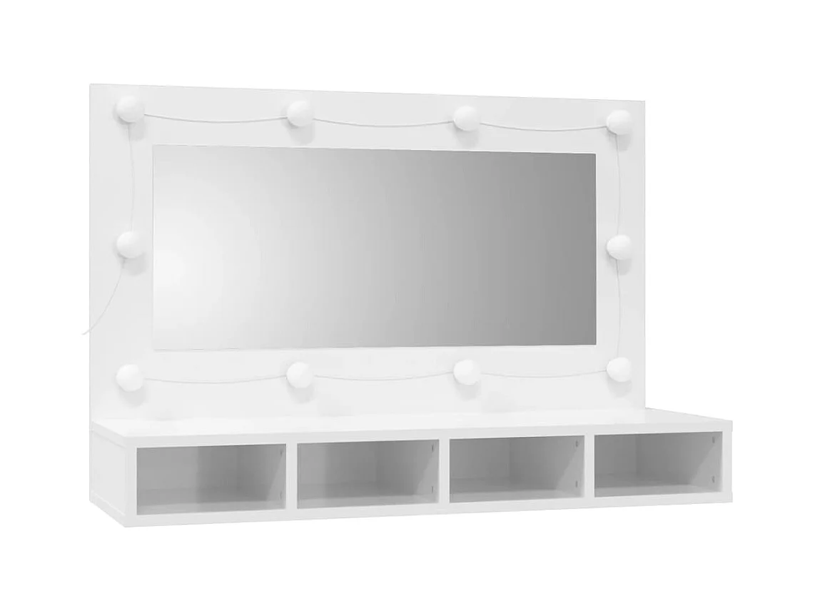 Armario espejo con LED Blanco brillo 90x31,5x62 cm