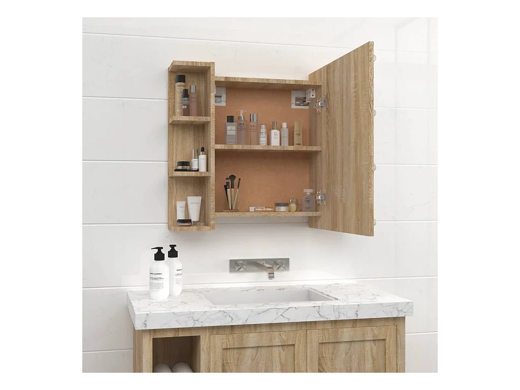 Mueble de baño con espejo LED MDF roble 80x15x60 cm ES844761