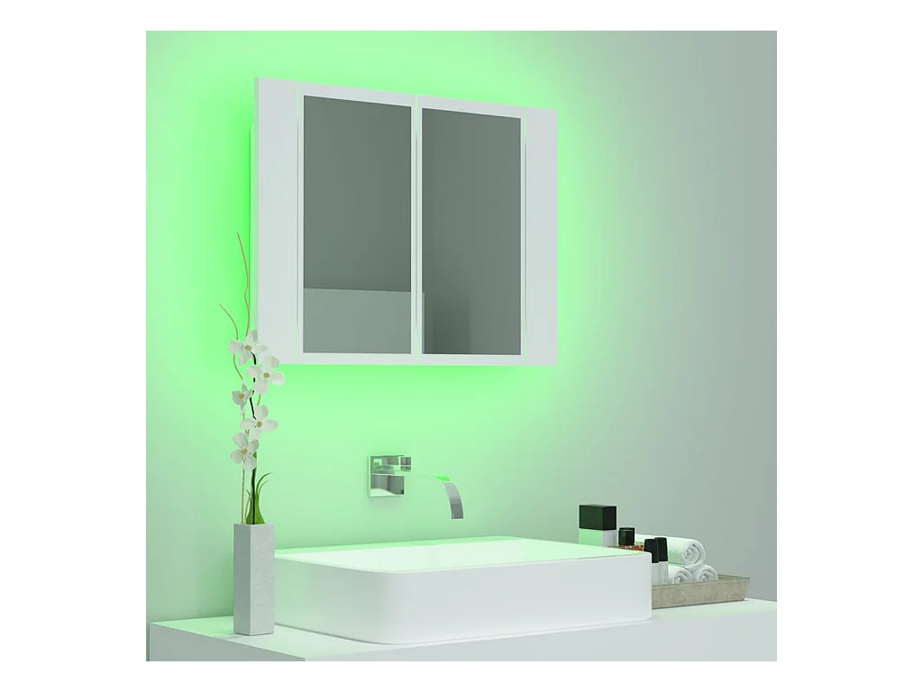Armario espejo de baño con luz LED acrílico blanco 60x12x45 cm