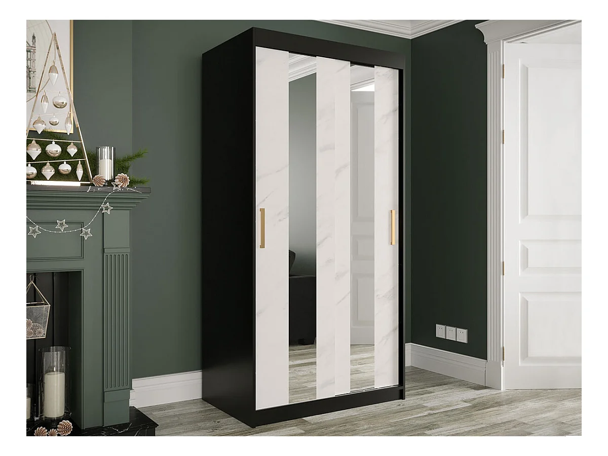 Armario Hartford 240, Mármol blanco|Negro mate, 200x100x62cm, Número de estantes: 4