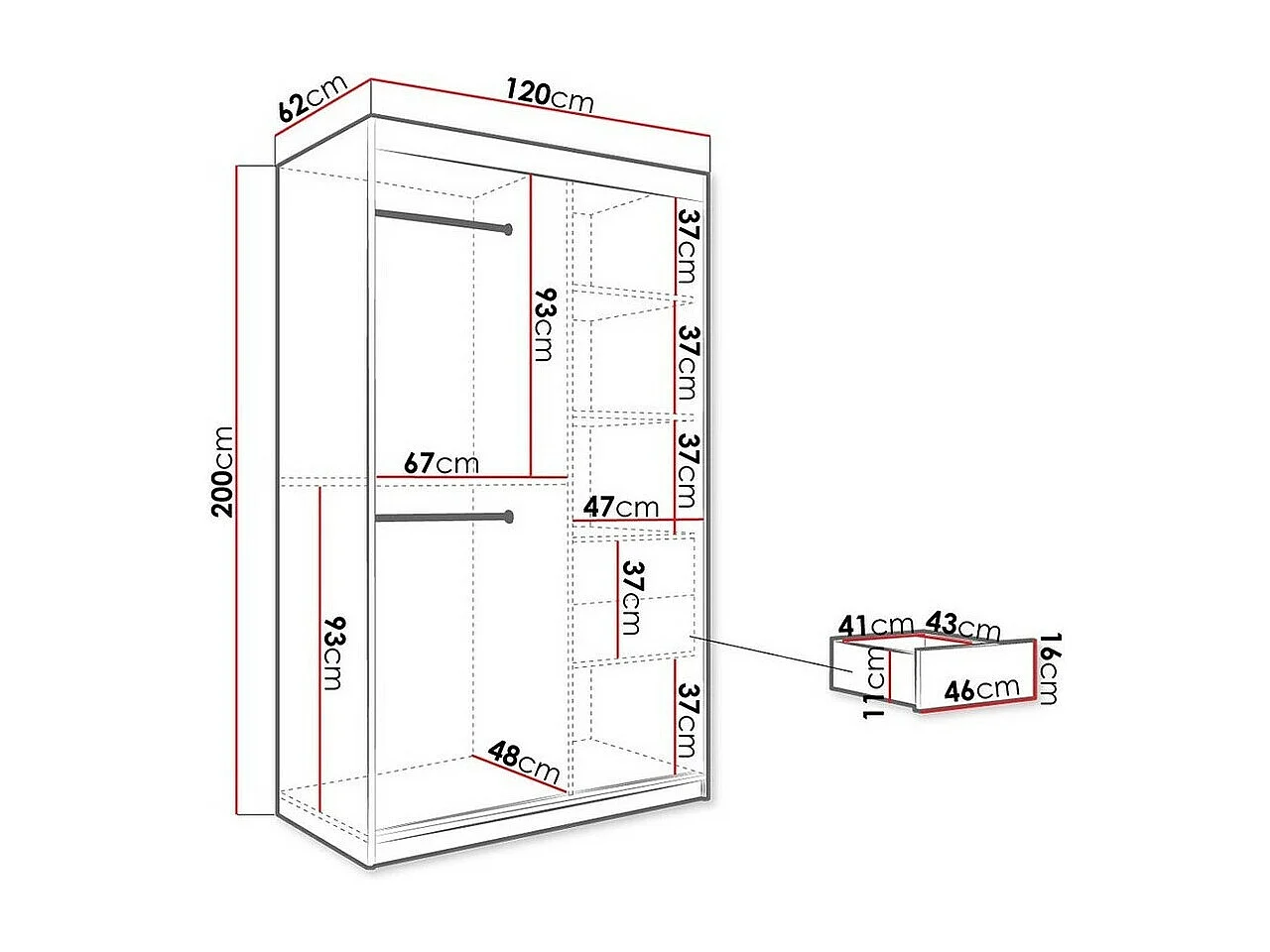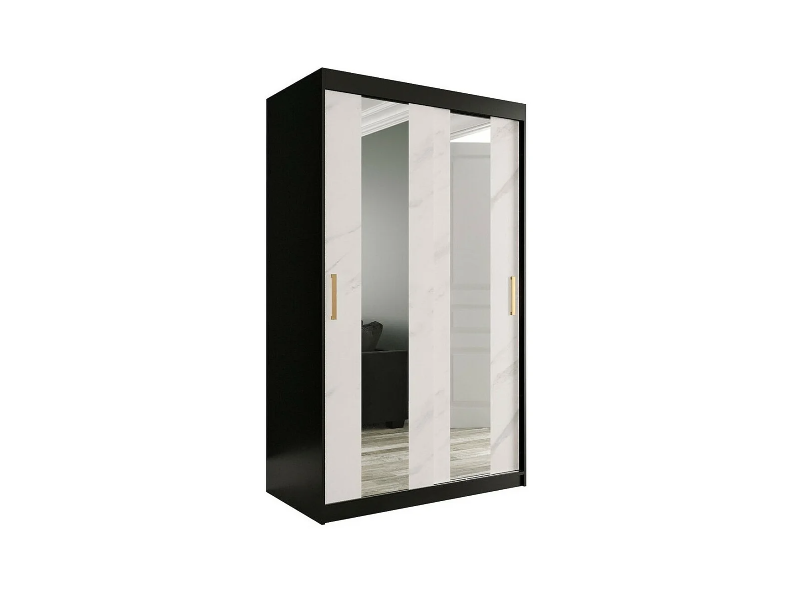 Armario Hartford 241, Negro mate|Mármol blanco, 200x120x62cm, Número de estantes: 4