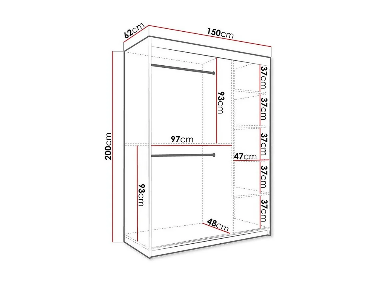 Armario Hartford 260, Mármol blanco|Mate blanco, 200x150x62cm, Número de estantes: 5