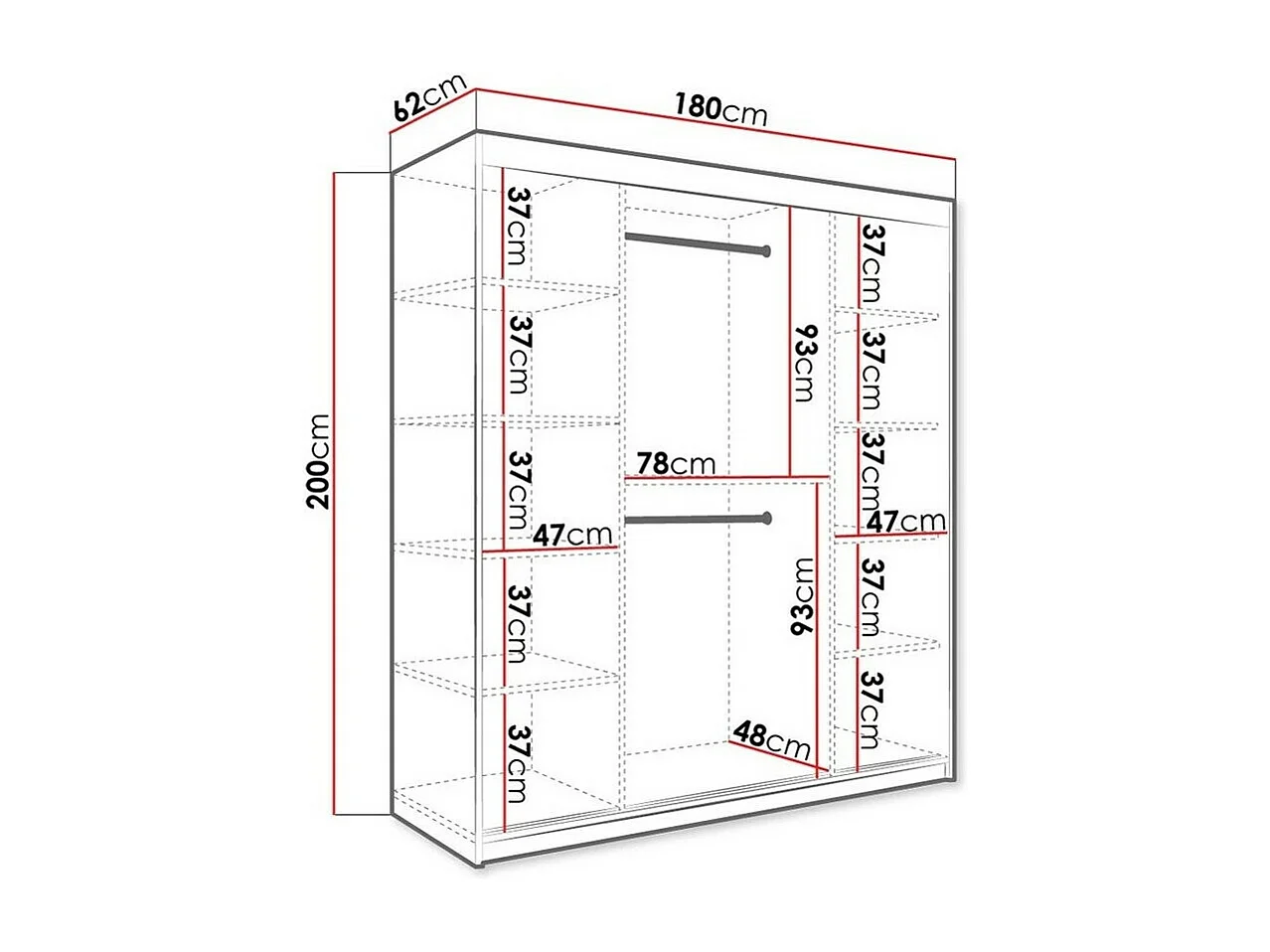 Armario Hartford 261, Mármol blanco|Negro mate, 200x180x62cm, Número de estantes: 9