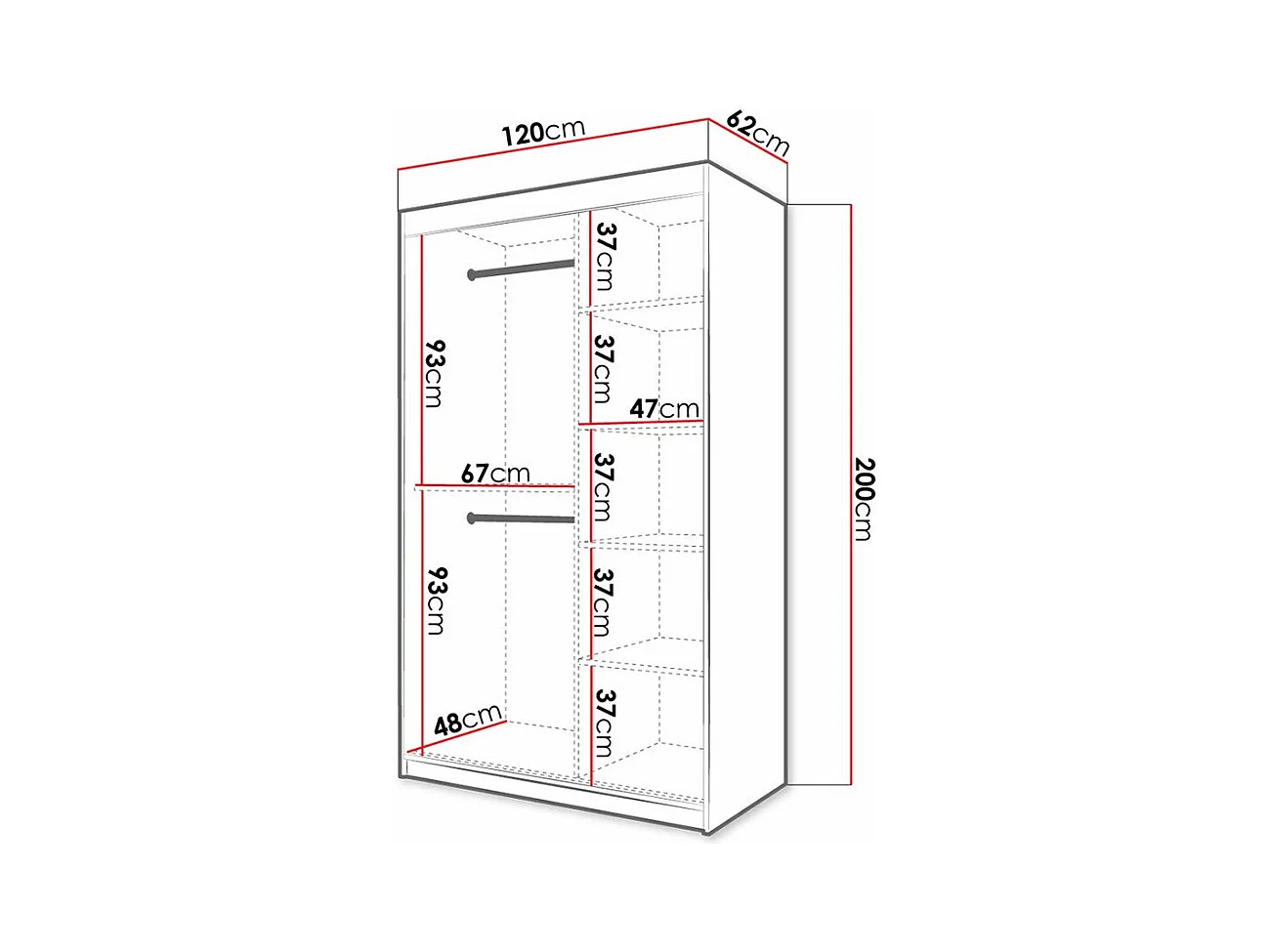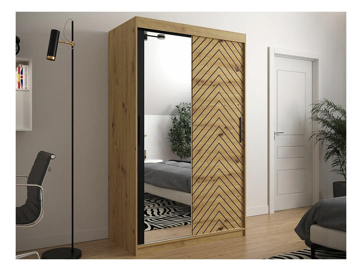 Armario Hartford 309, Negro|Roble Artisan, 200x120x62cm, Puertas de armario: Correderas