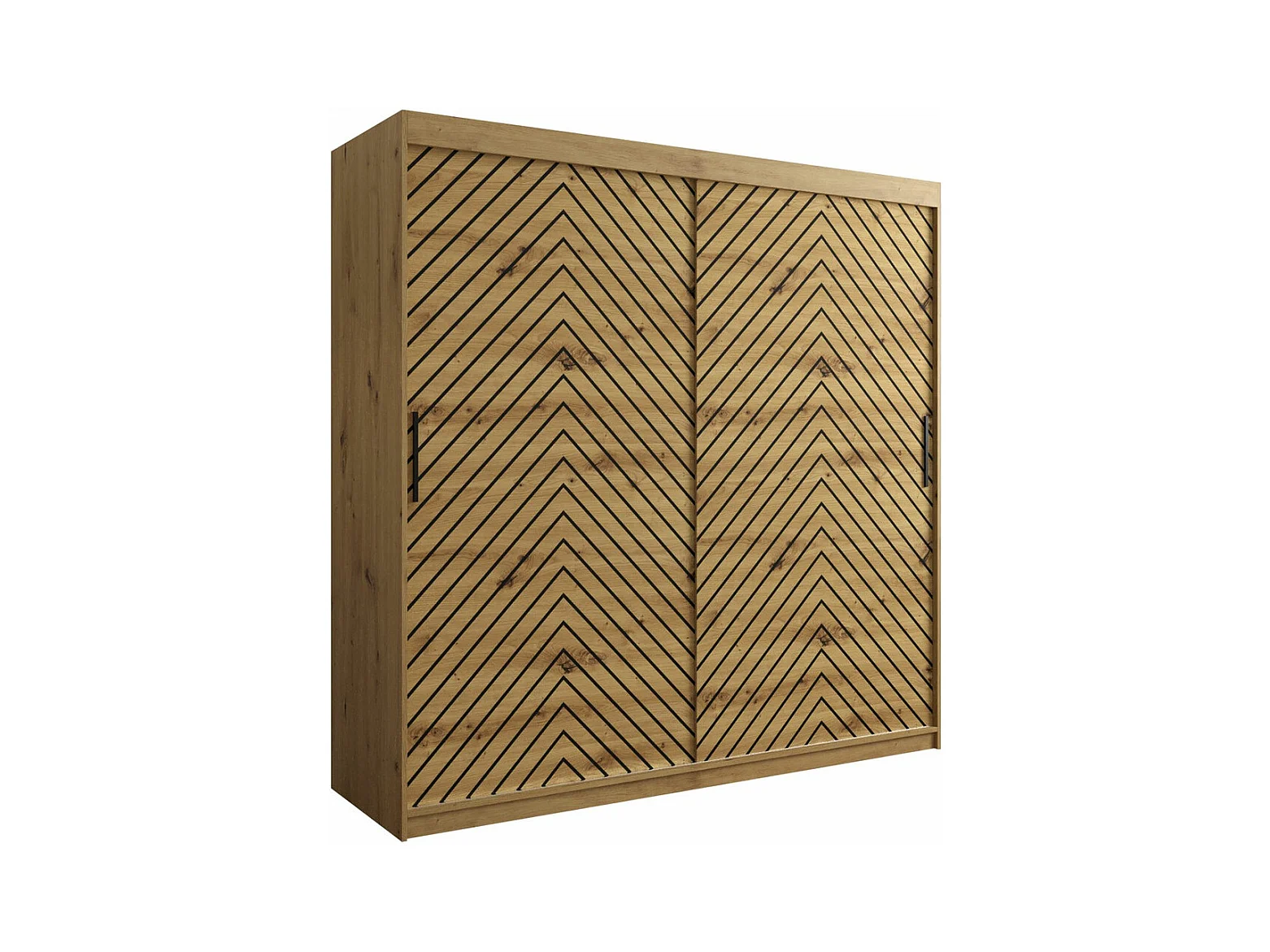 Armario Hartford 308, Roble Artisan|Negro, 200x120x62cm, Puertas de armario: Correderas