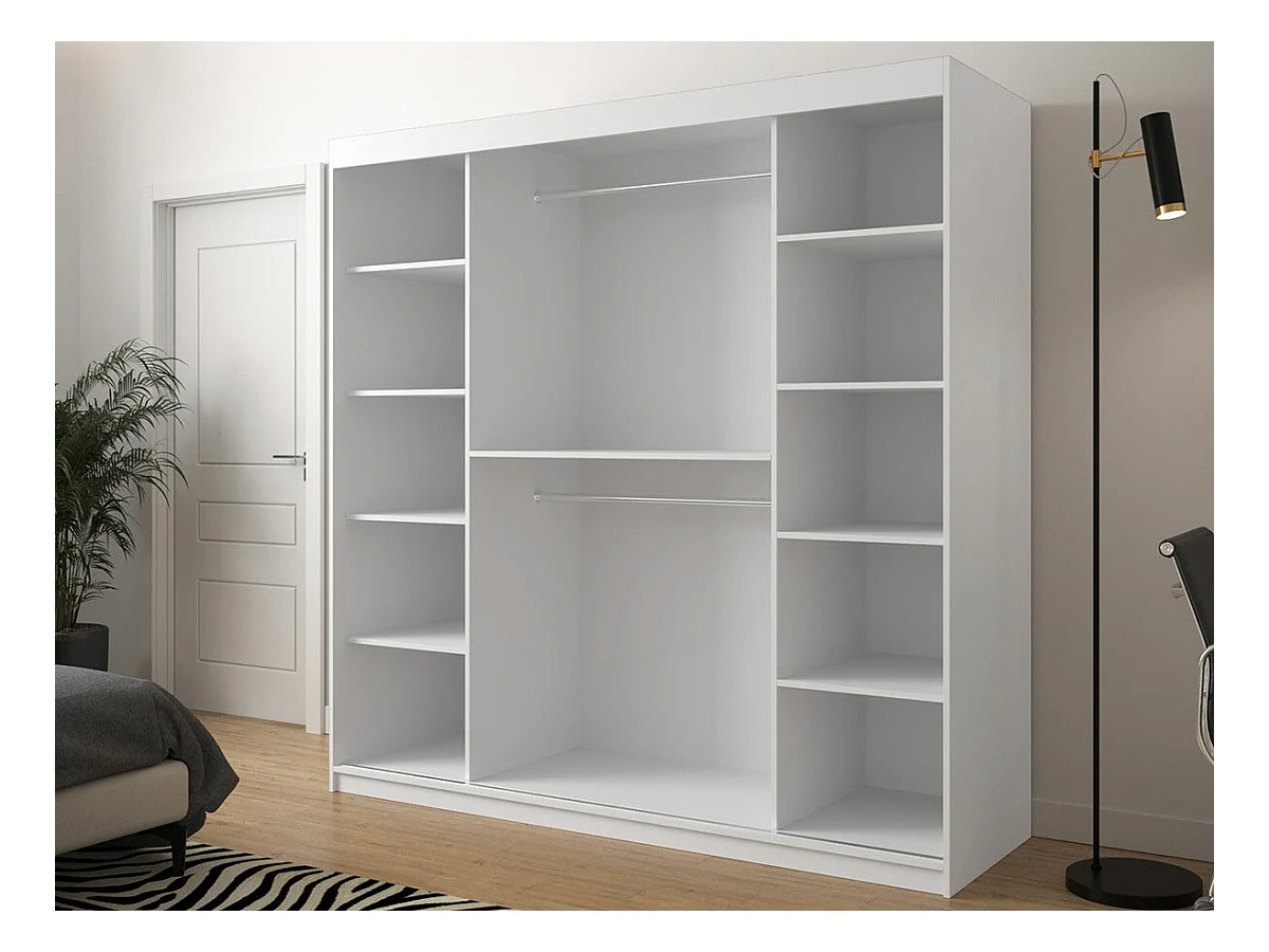 Armario Hartford 251, Mármol blanco|Negro mate, 200x250x62cm, Número de estantes: 9