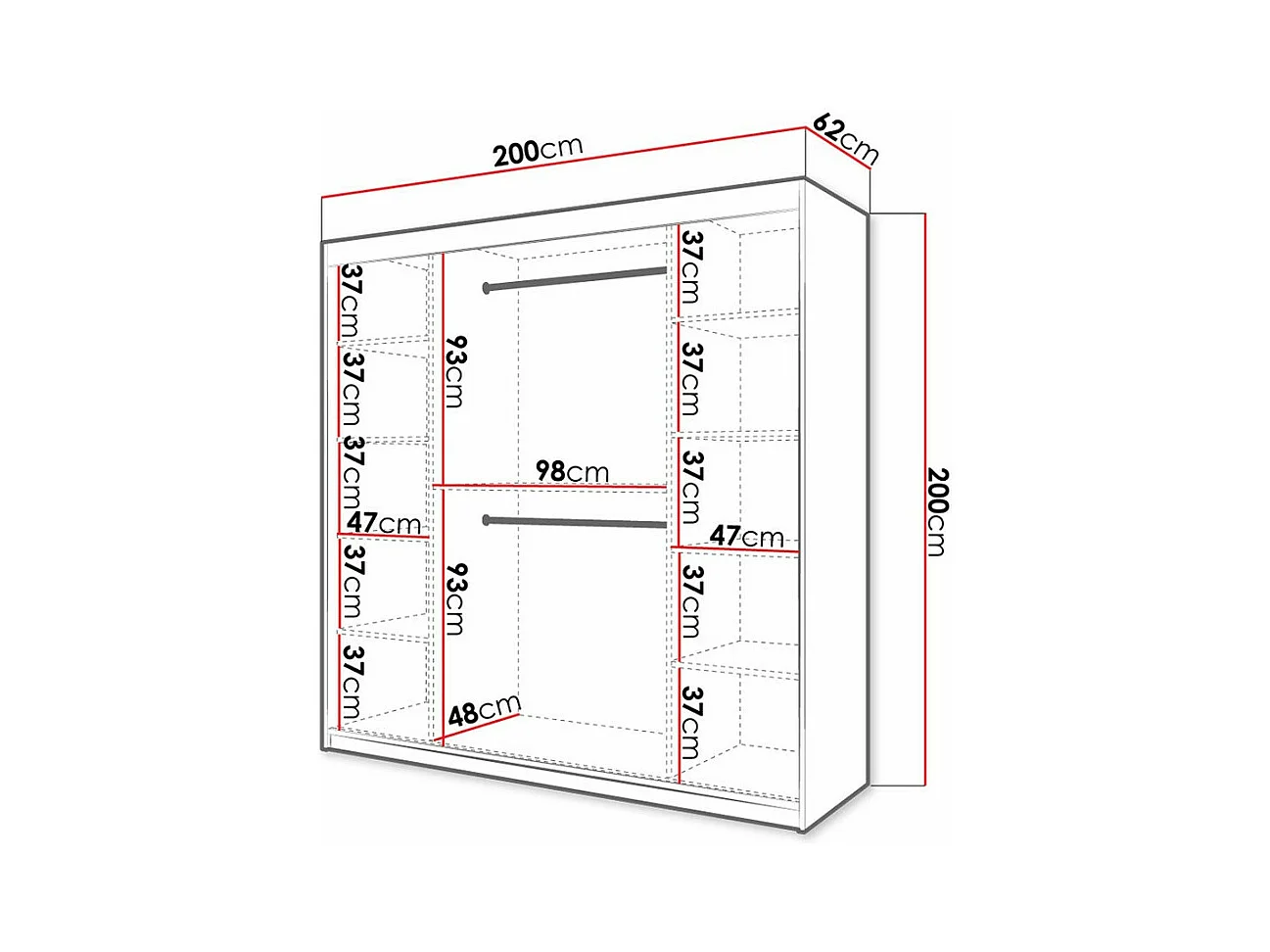 Armario Hartford 249, Mármol negro|Mate blanco, 200x180x62cm, Número de estantes: 9
