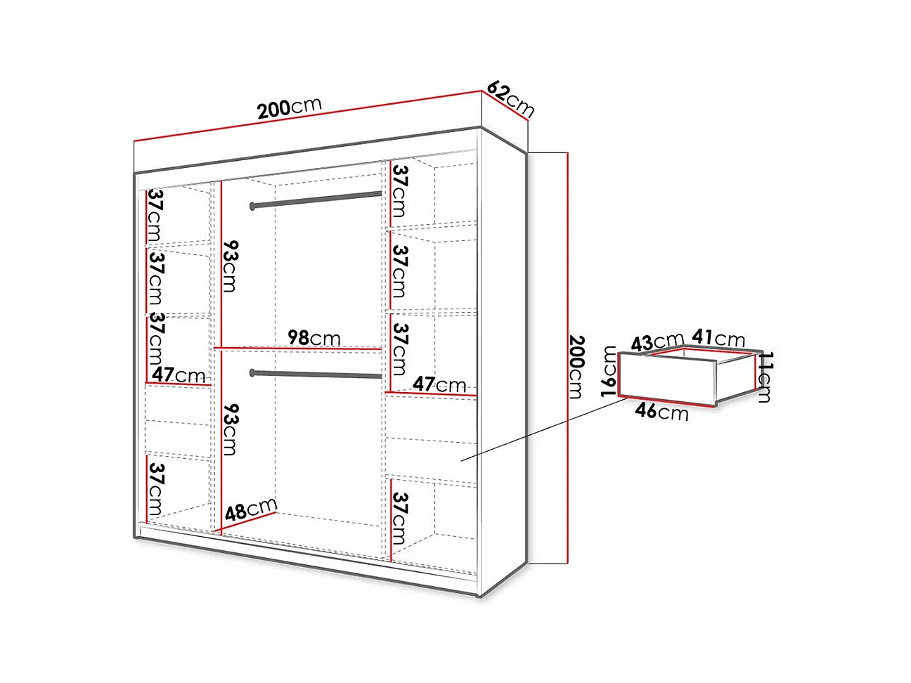 Armario Hartford 315, Roble Artisan|Negro, 200x200x62cm, Puertas de armario: Correderas