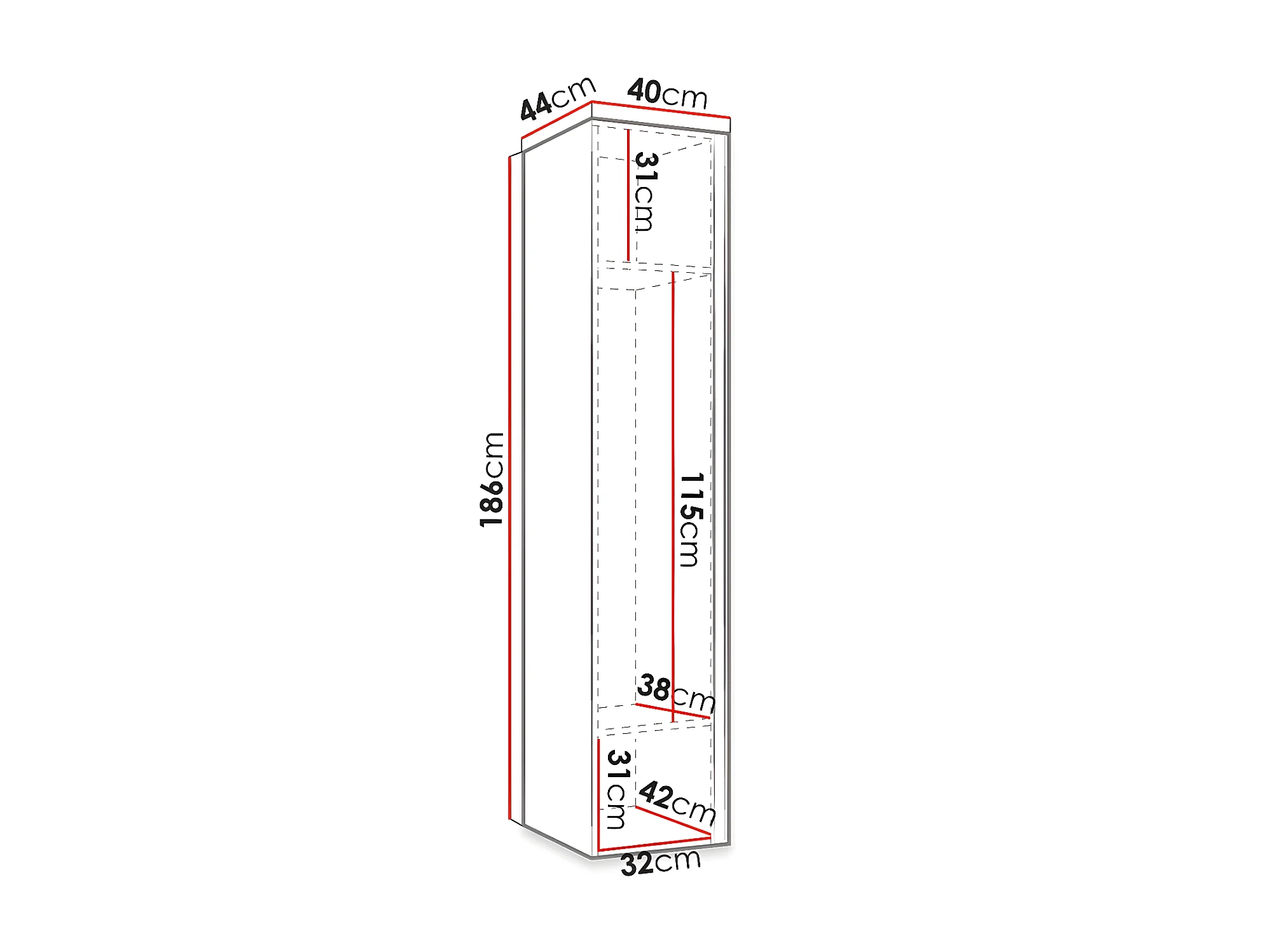 Armario Hartford 370, Roble Artisan|Negro, 186x40x44cm, Número de estantes: 2