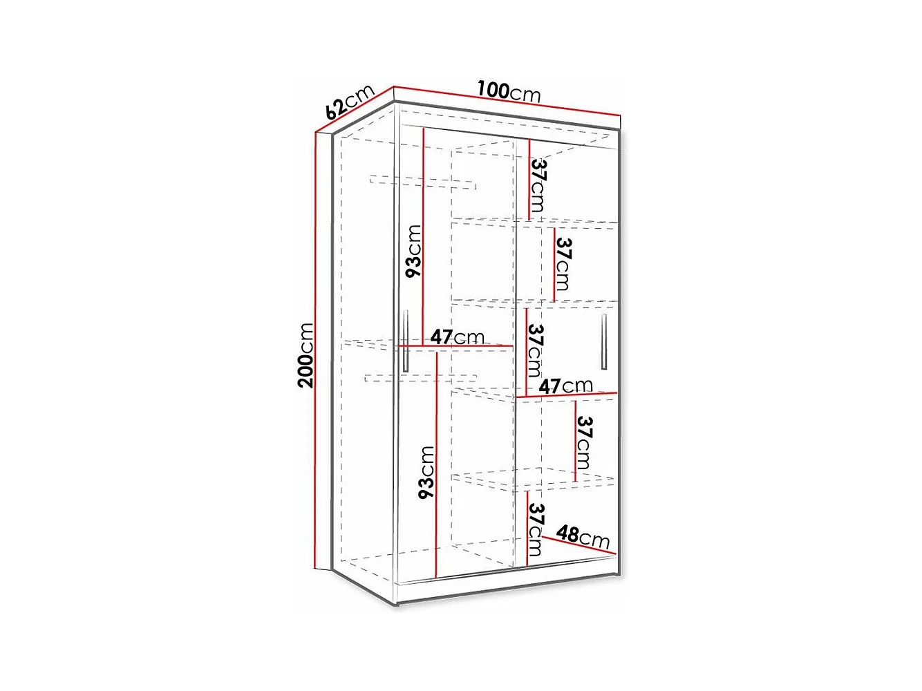 Armario Hartford 464, Nogal|Negro, 200x100x62cm, Puertas de armario: Correderas