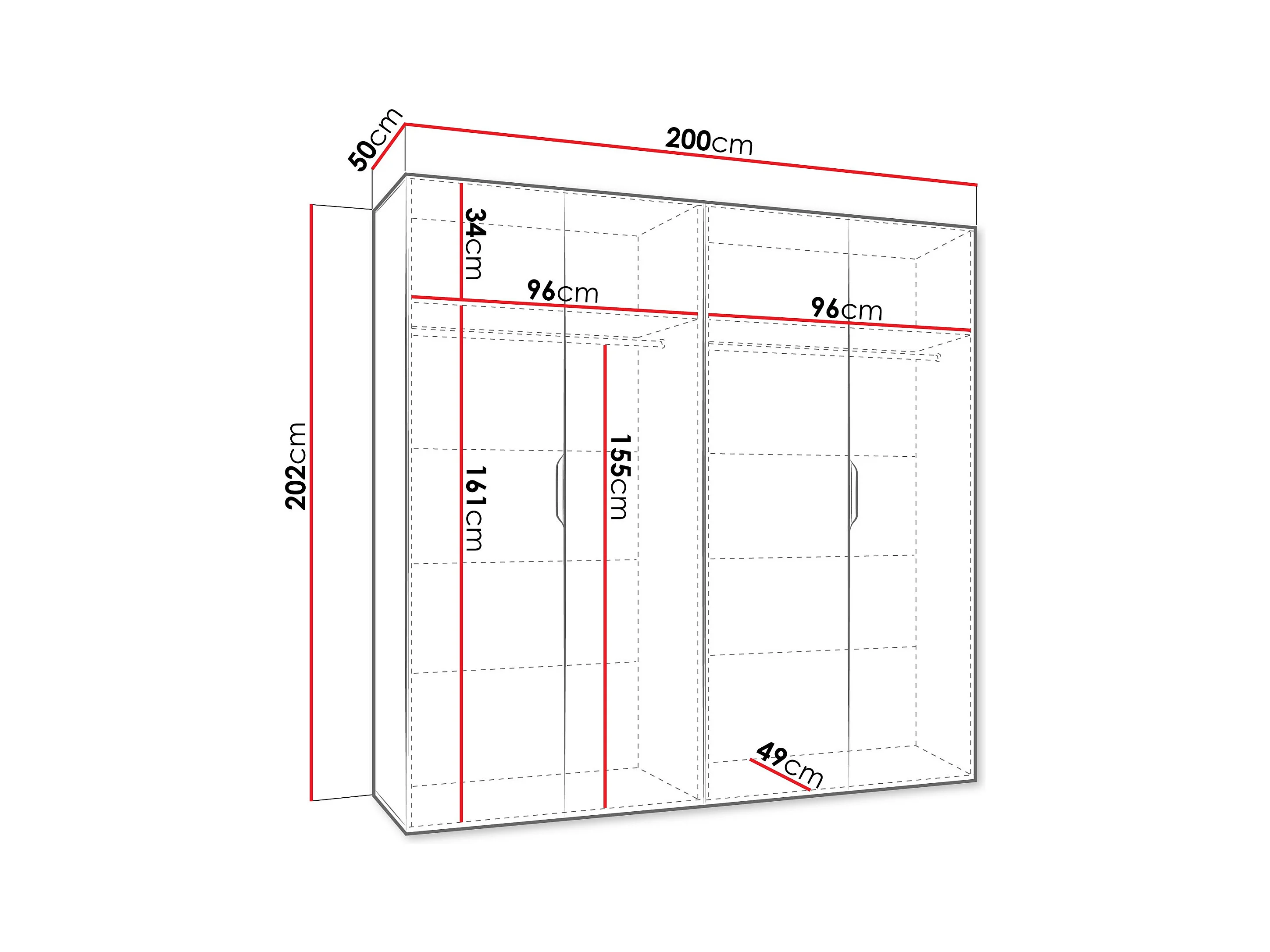 Armario Closico 194, Negro, 215x100x58cm, Puertas de armario: Con bisagras