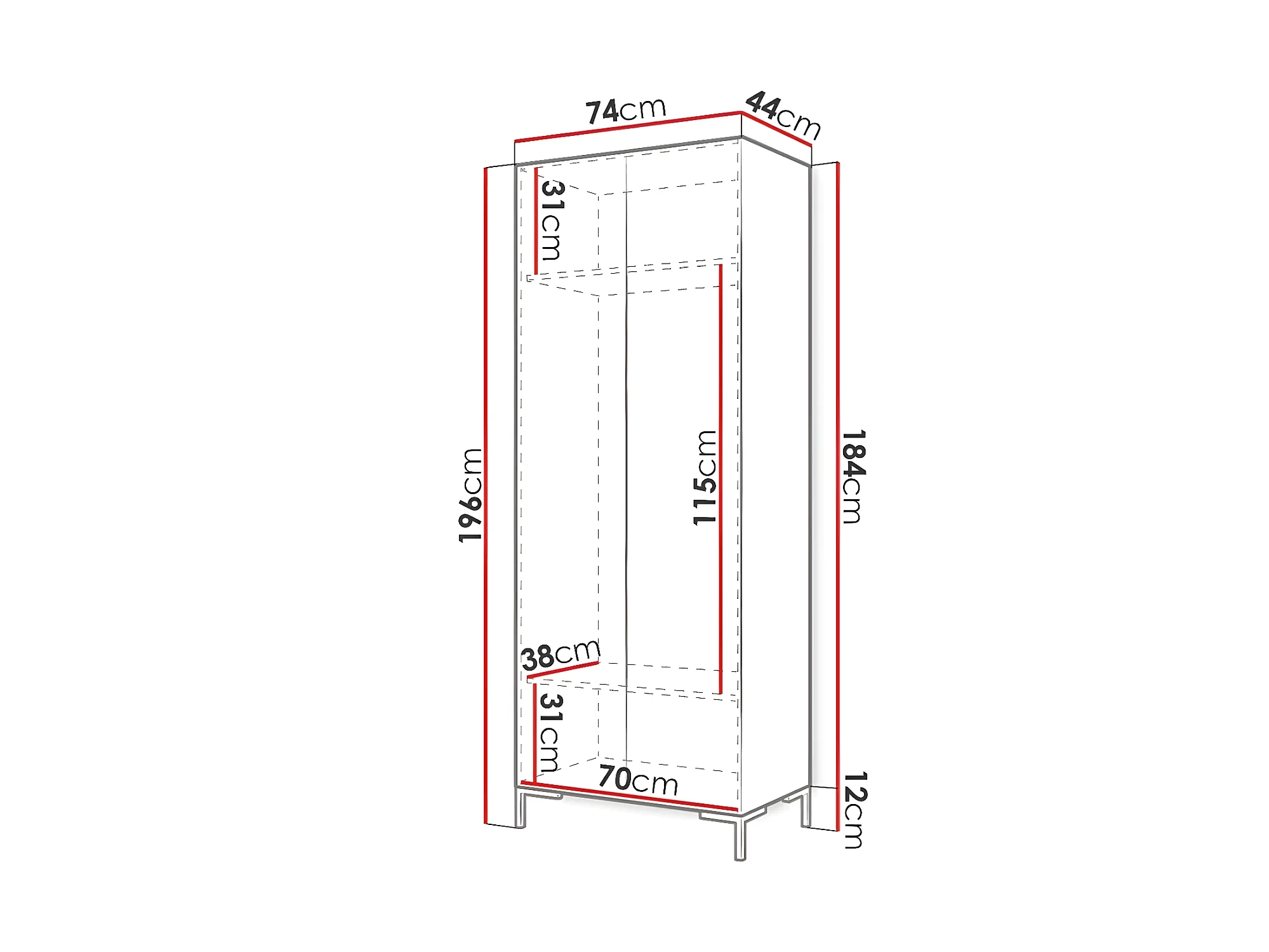 Armario Tivsoa 110, Dorado|Blanco, 196x74x44cm, Puertas de armario: Con bisagras