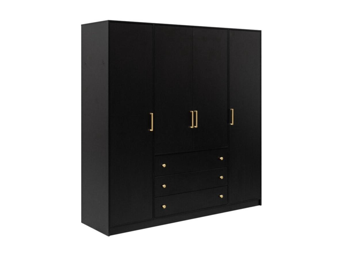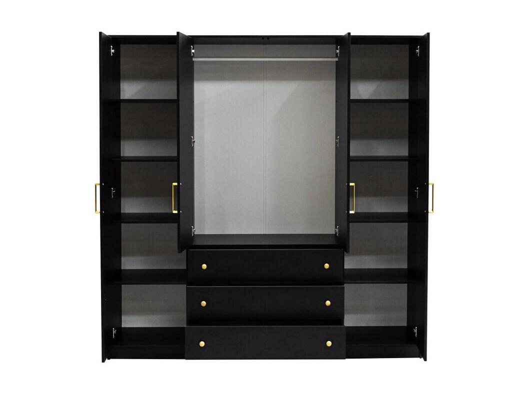 Armario Honolulu 252, Negro|Dorado, 200x196x58cm, Puertas de armario: Con bisagras