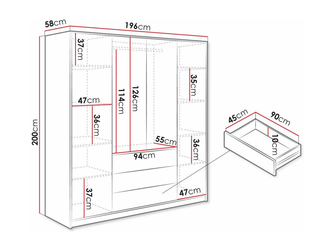 Armario Closico 189, Negro|Blanco, 200x100x58cm, Puertas de armario: Correderas