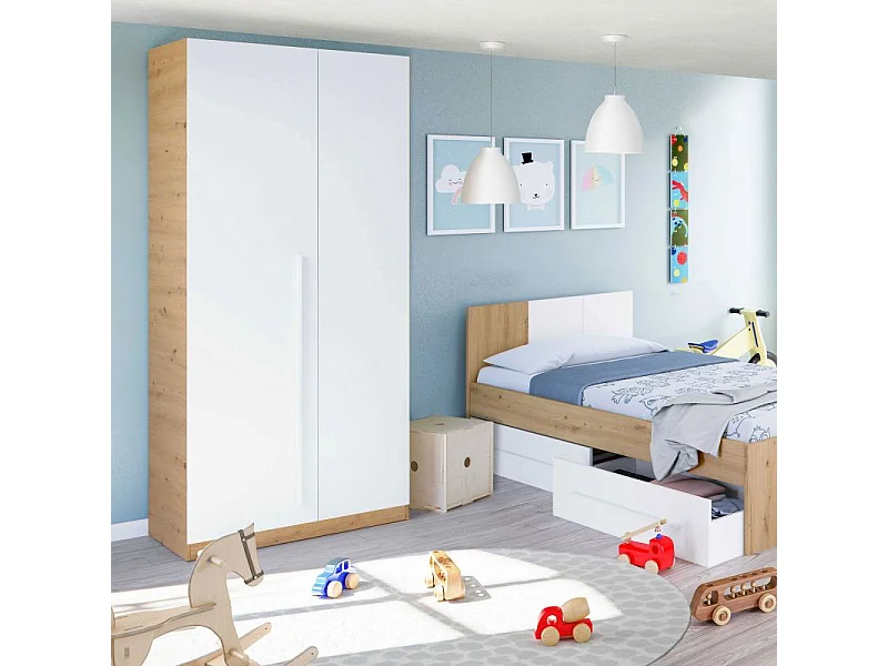 Armario juvenil Ambient - Roble Nodi y Blanco Artik