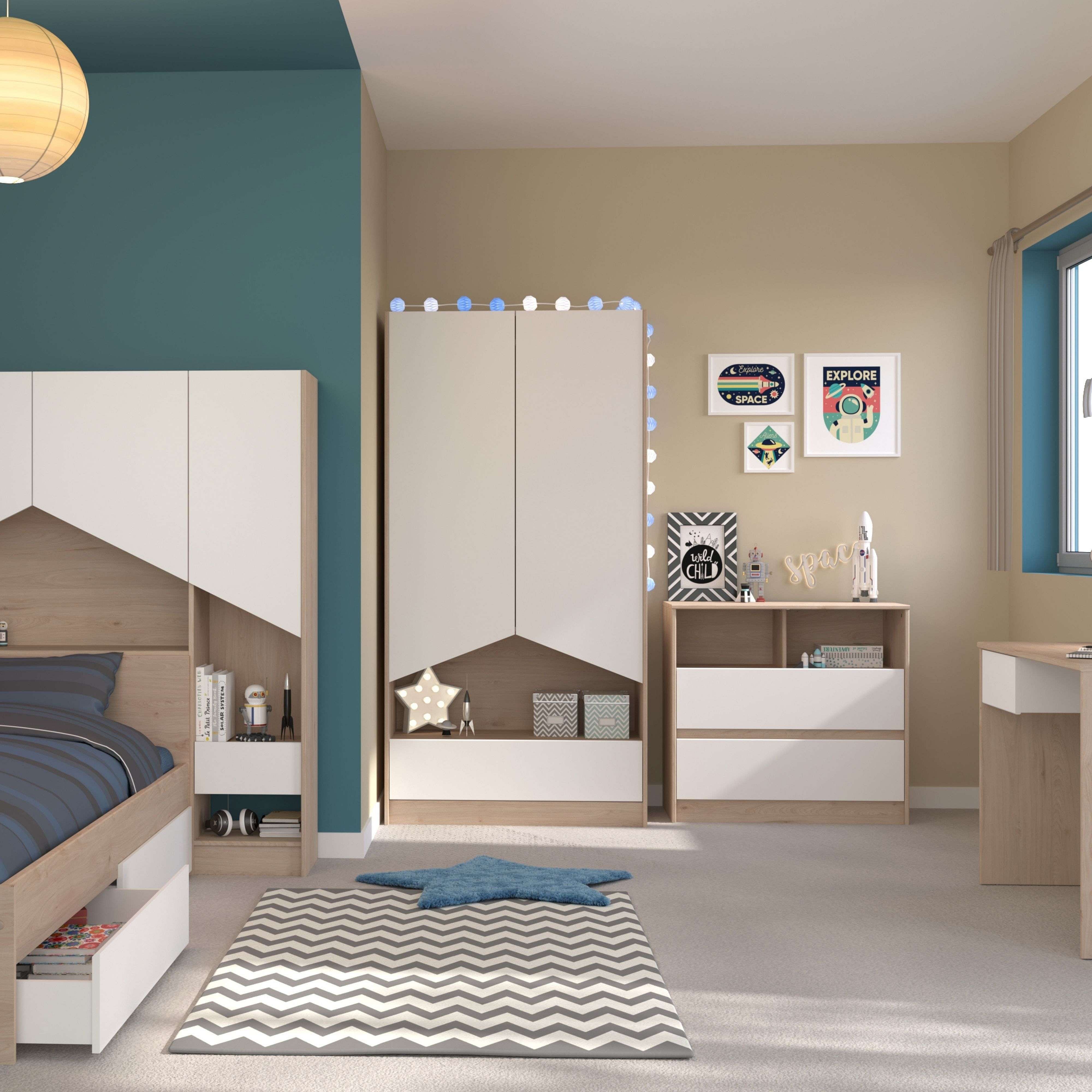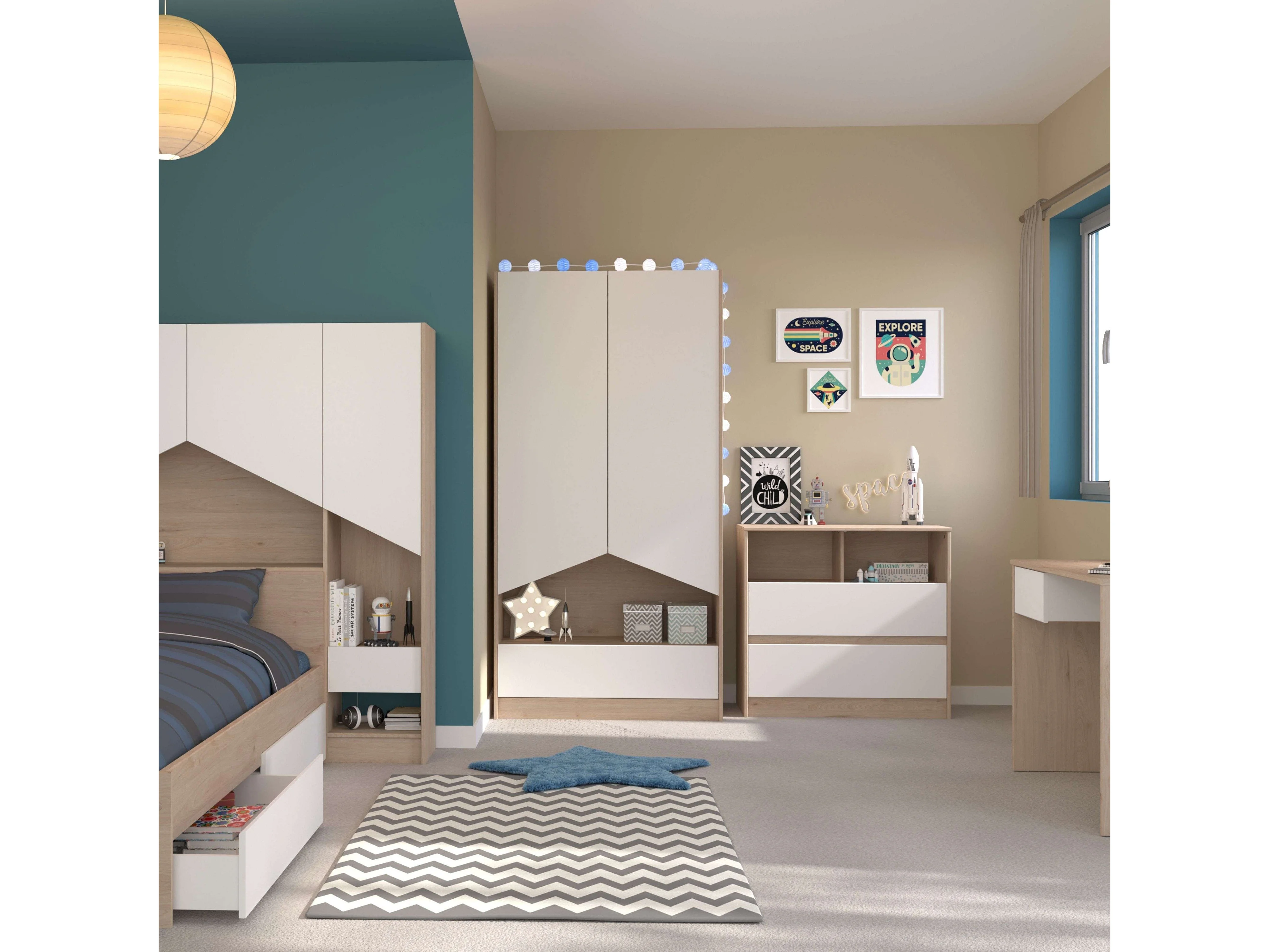 Armario Juvenil Child 2 Puertas y Cajón Roble Jackson Blanco Mate