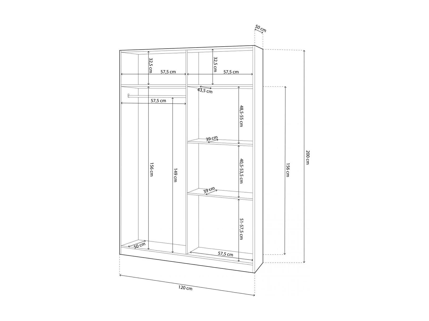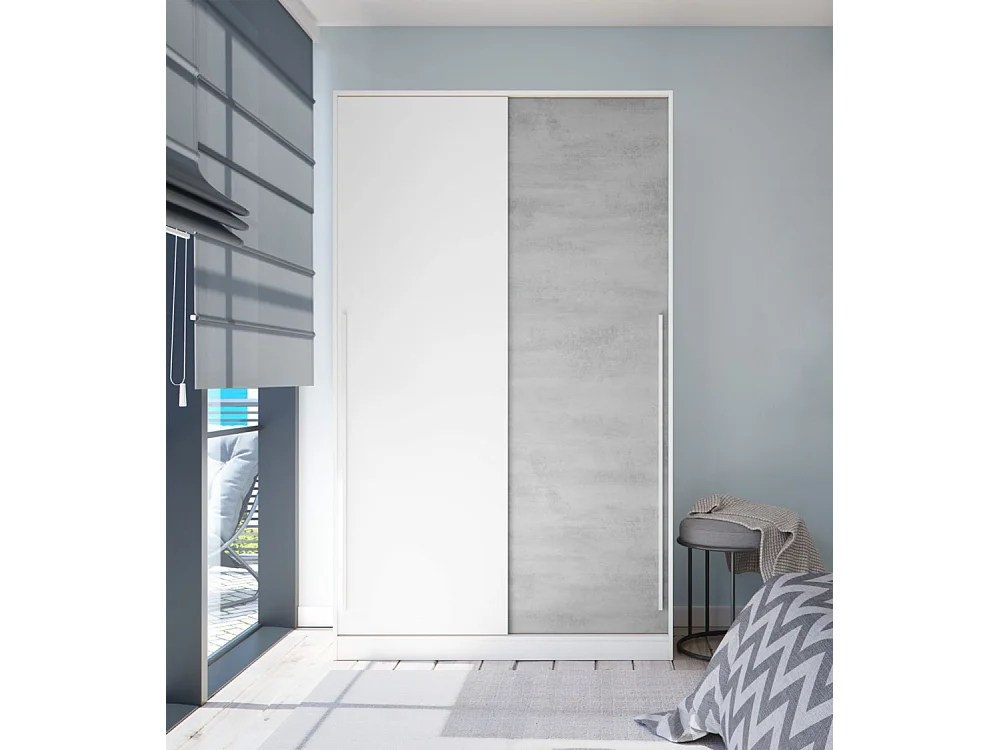 Armario juvenil de 200x120x50 cm con puertas correderas y guías metálicas en blanco India