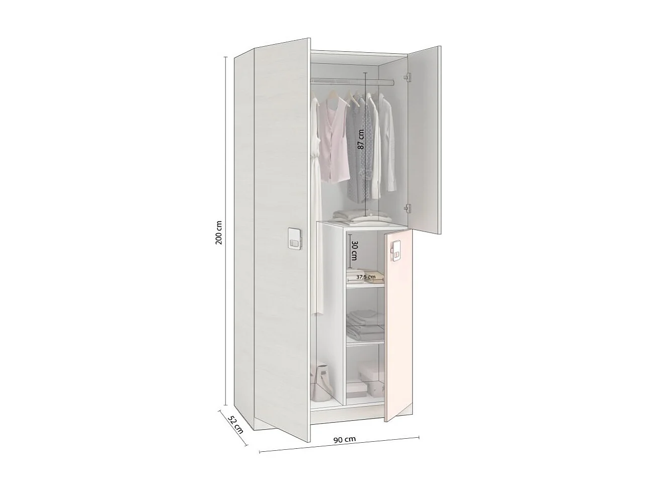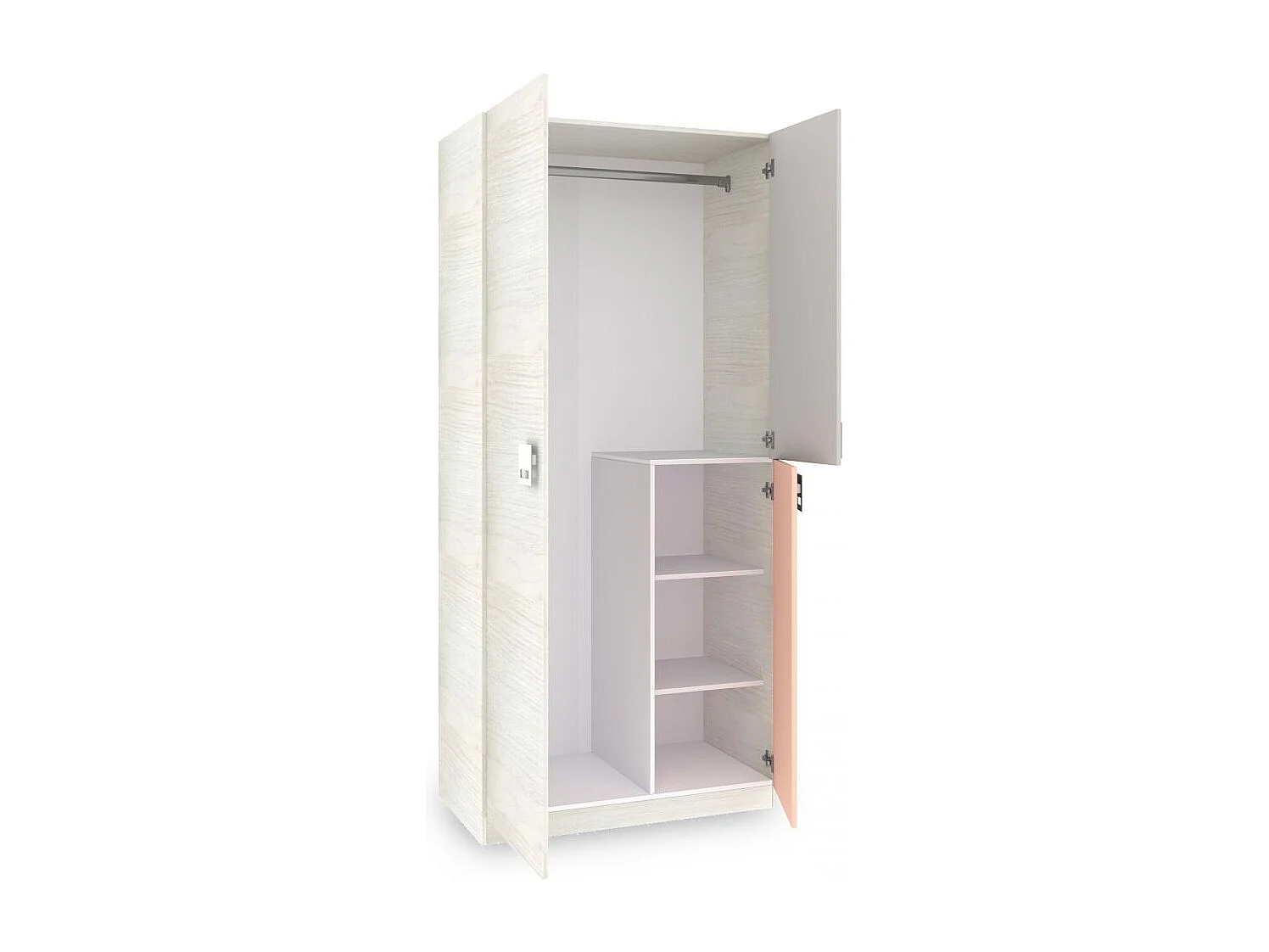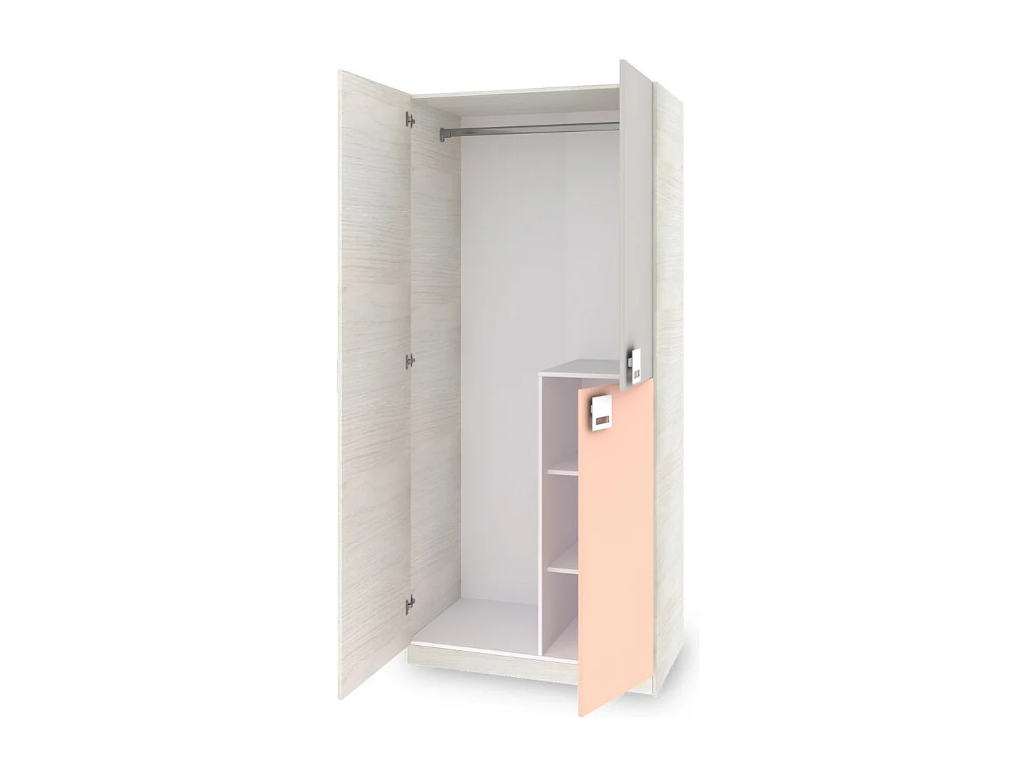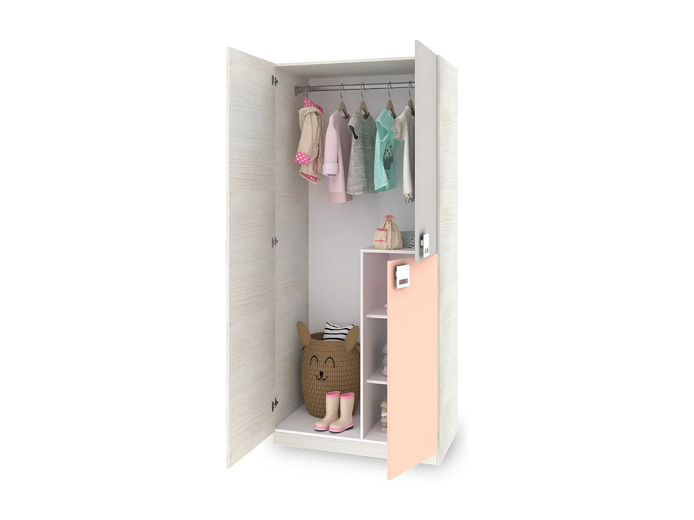 Armario juvenil Kenia Blanco Alpes - Rosa y Gris