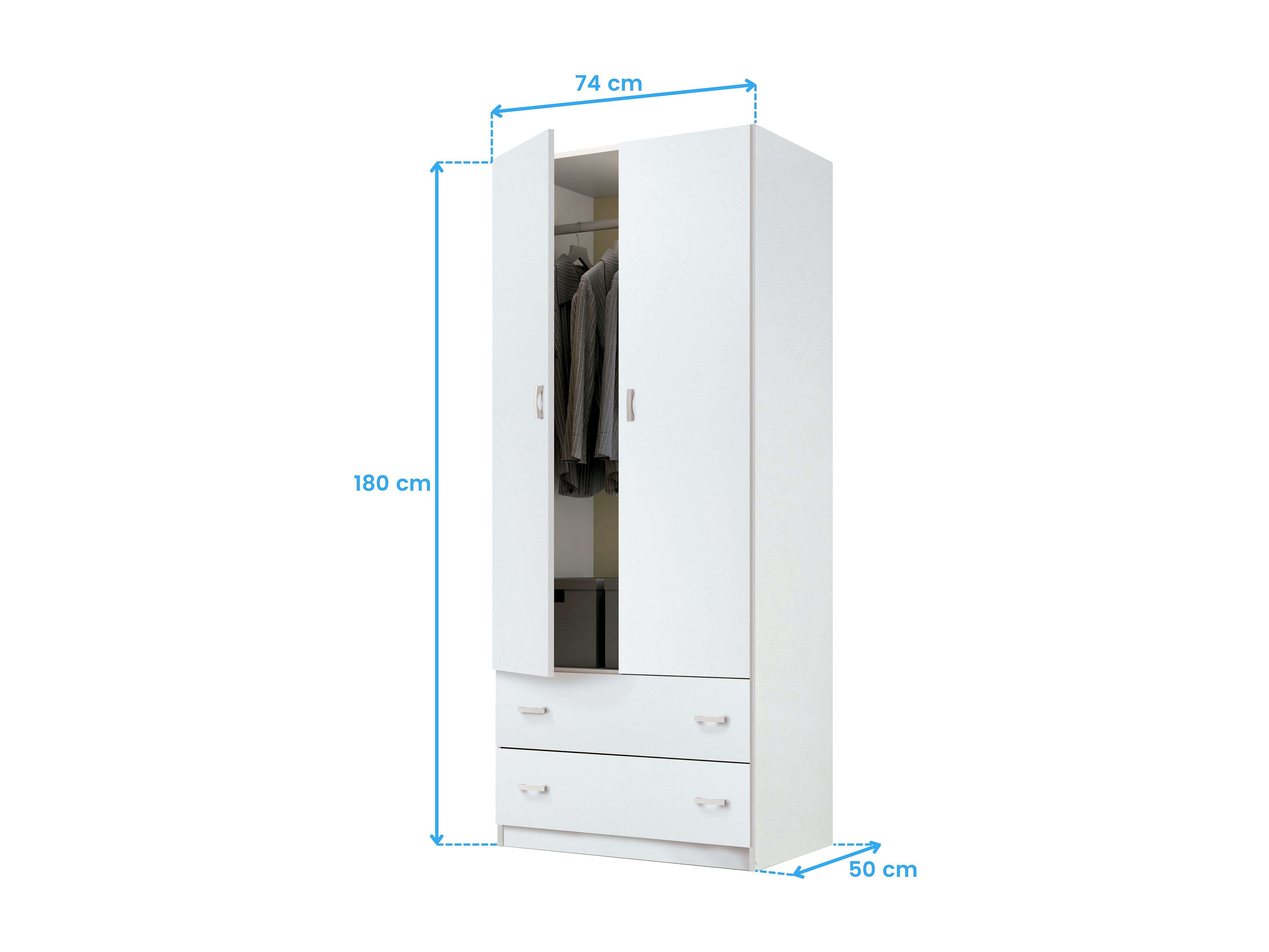 Armario infantil - 90 x 45 x 180 cm - con 2 puertas + barra + 2 cajones - aglomerado - blanco
