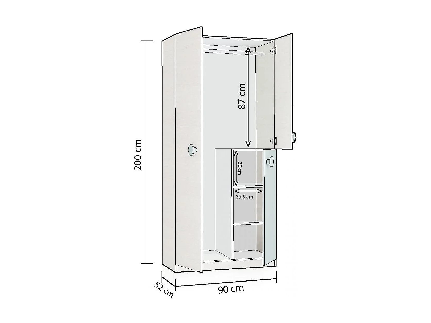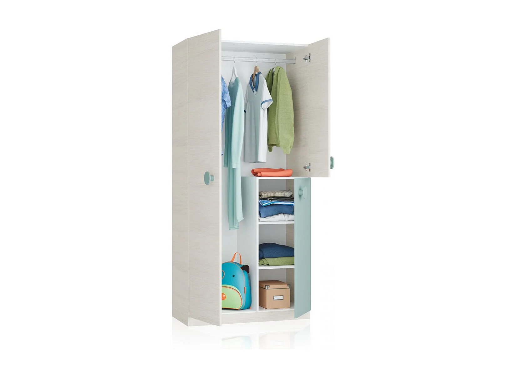 Armario juvenil Yuki Blanco Alpes - Verde Acqua