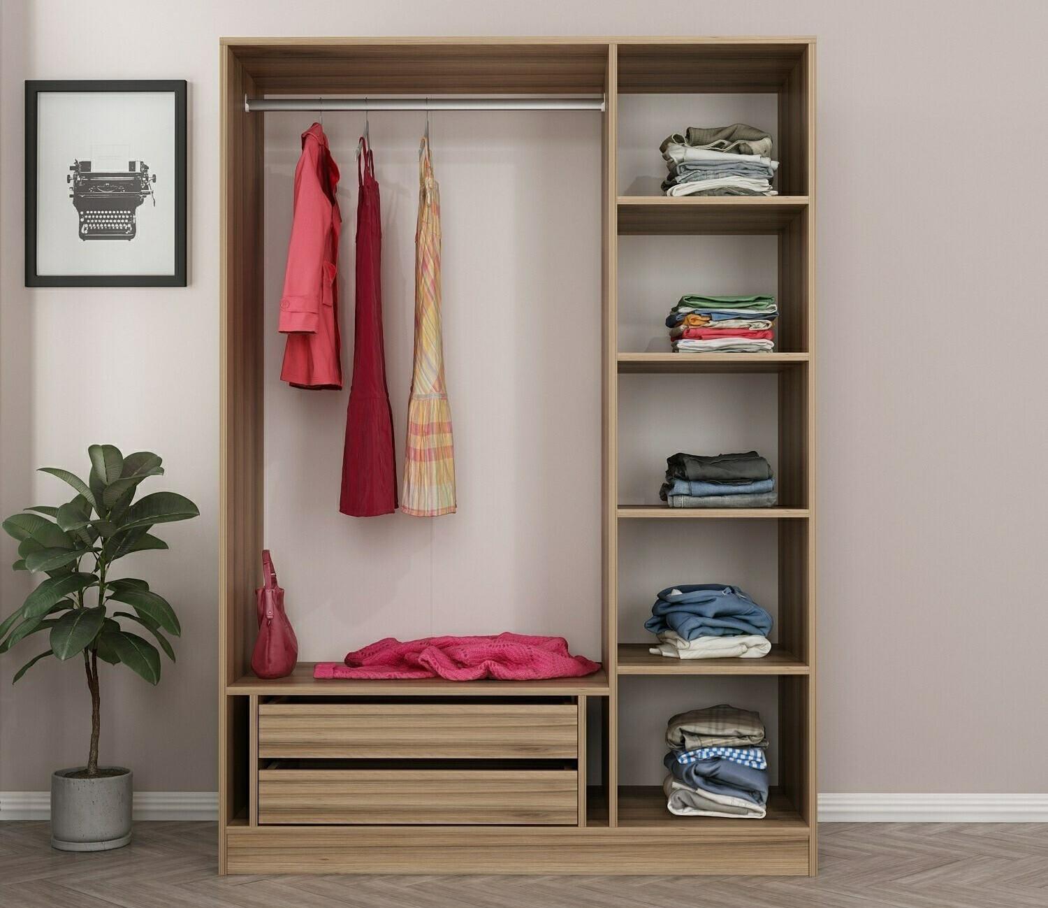 Armario Kailua M120, Roble, 210x135x52cm, Puertas de armario: Con bisagras