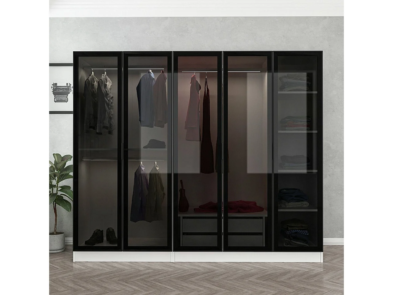 Armario Kale-6656 antracita negro 315x190x52 cm