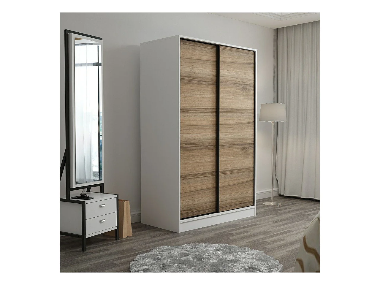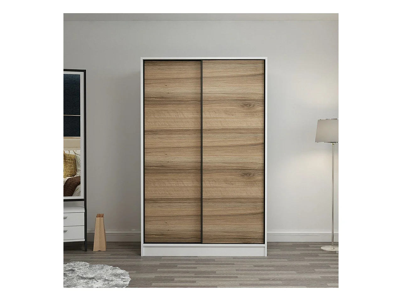 Armario Kailua T100, Blanco|Roble, 210x120x60cm, Puertas de armario: Correderas