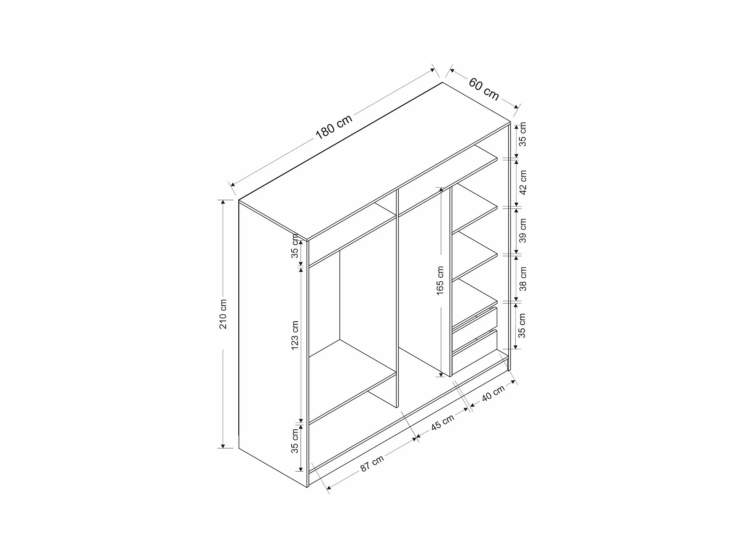 Armario Kale-3970 antracita blanco 180x210x52 cm