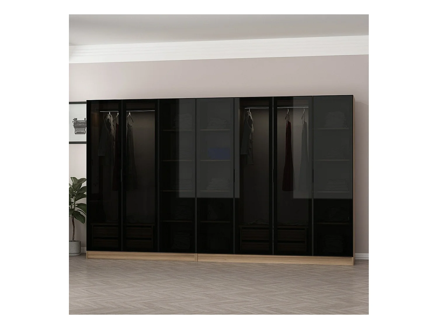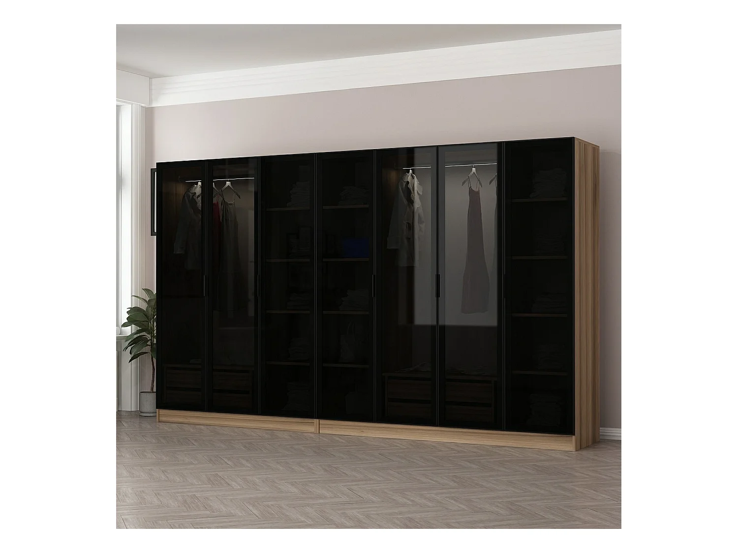 Armario Kailua S103, Roble|Negro, 210x135x52cm, Puertas de armario: Con bisagras