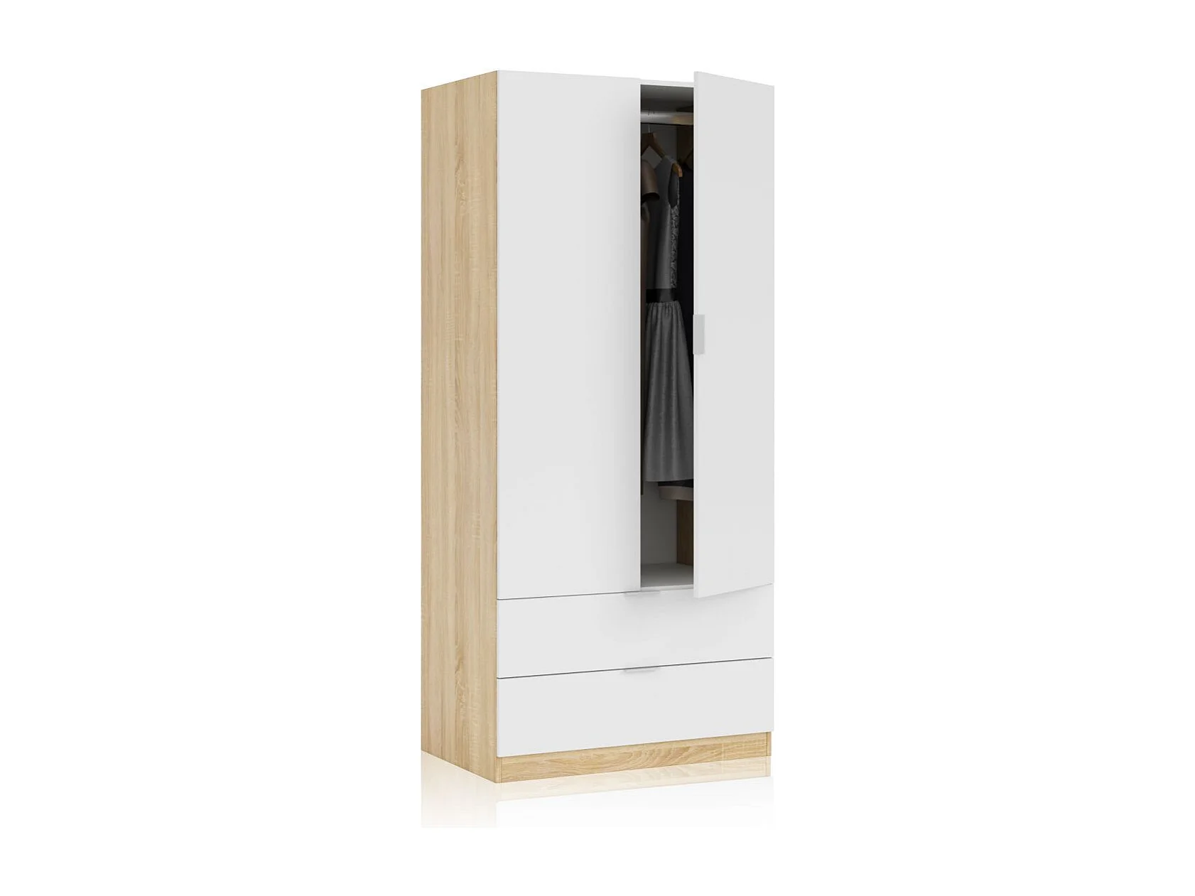 Armario Lark 2 Puertas 2 Cajones Blanco Artik (Blanco Mate) - Roble Canadian