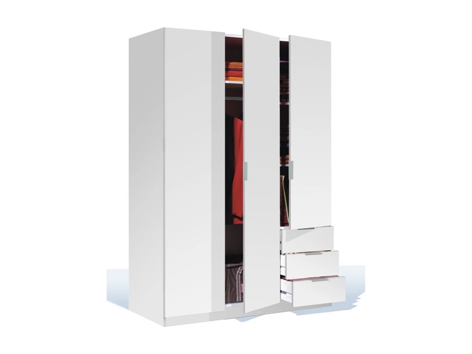 Armario LC 3 puertas + 3 cajones blanco 180x121x52 cm