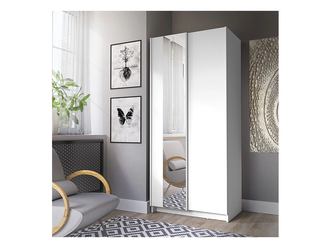 Armario LYSIA de 2 puertas correderas con espejo – 100 x 182 x 55 cm – Color blanco
