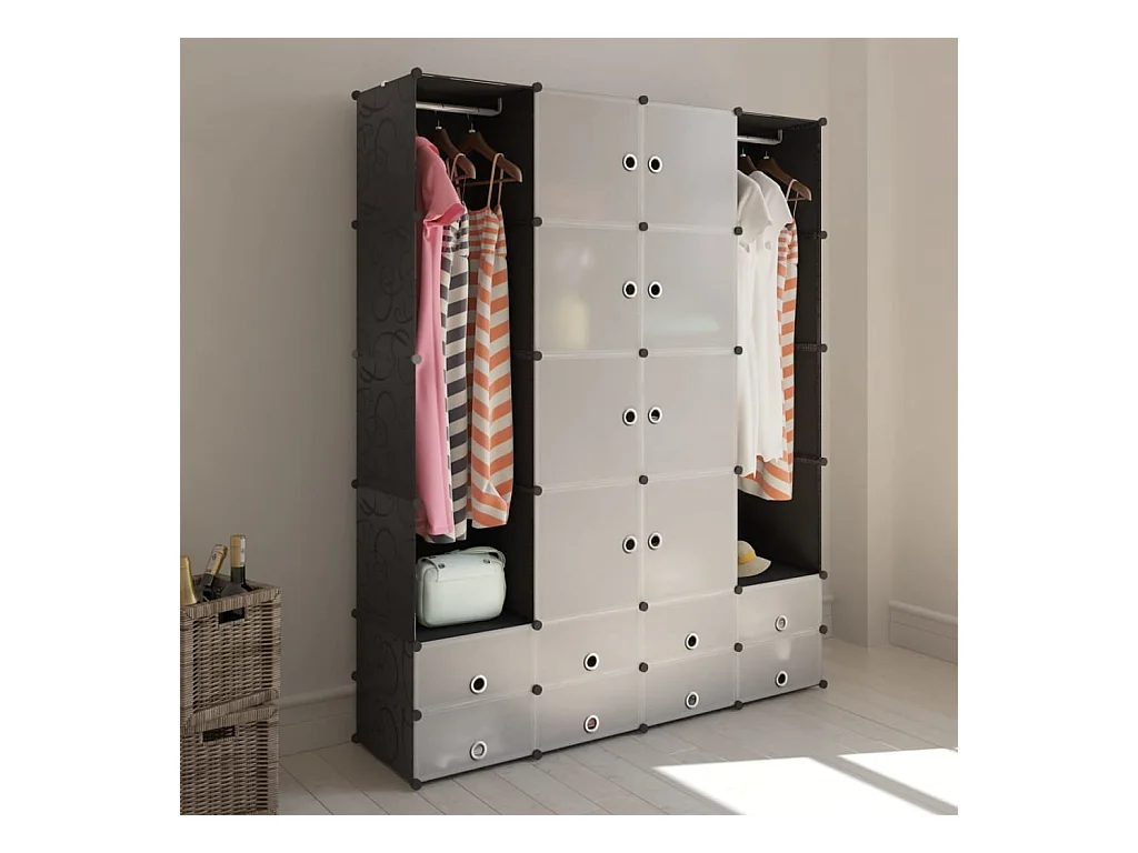 Armario modular 18 compartimentos Blanco y negro 37x146x180,5cm