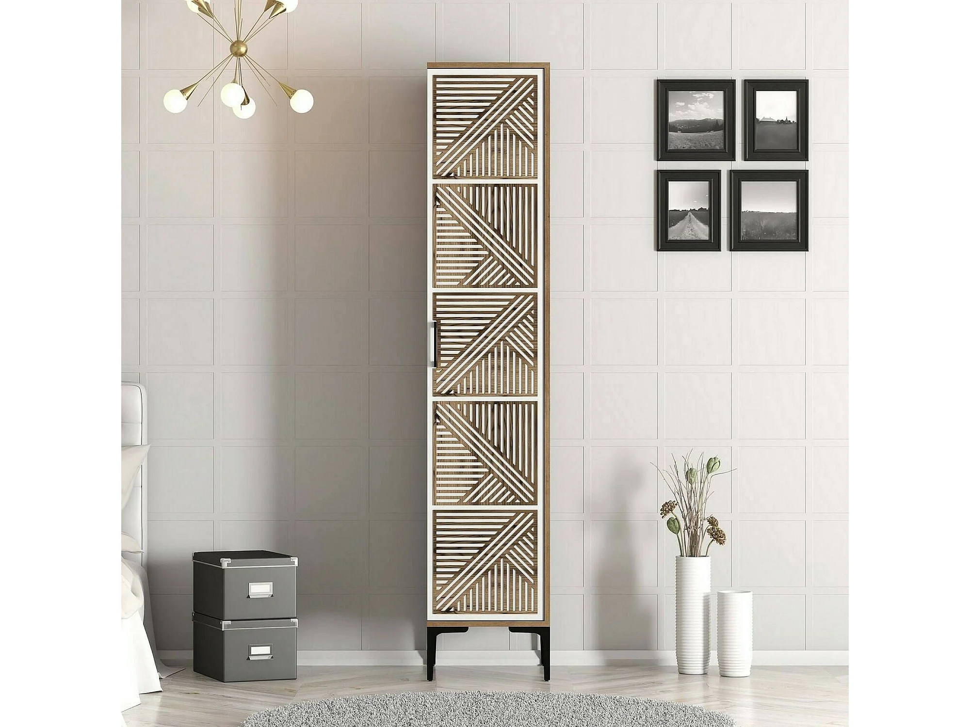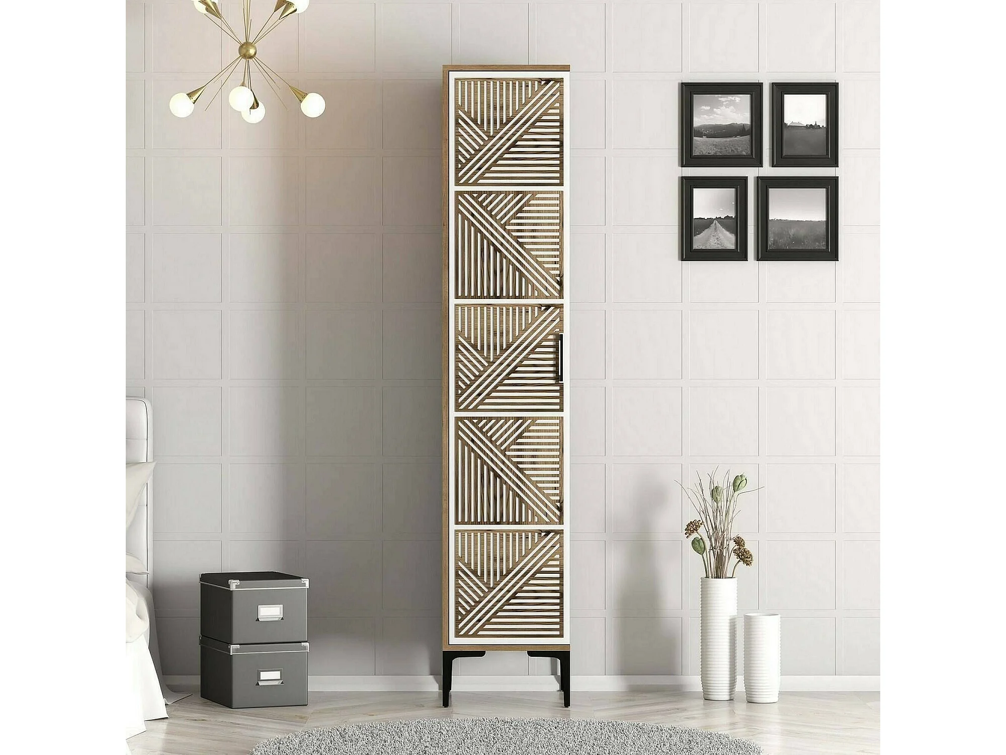 Armario multiusos 1 puerta Dnuytinc, Muebles multifuncionales, Zapatero, Armario para zapatos, 48x40h201 cm, Nogal y Blanco