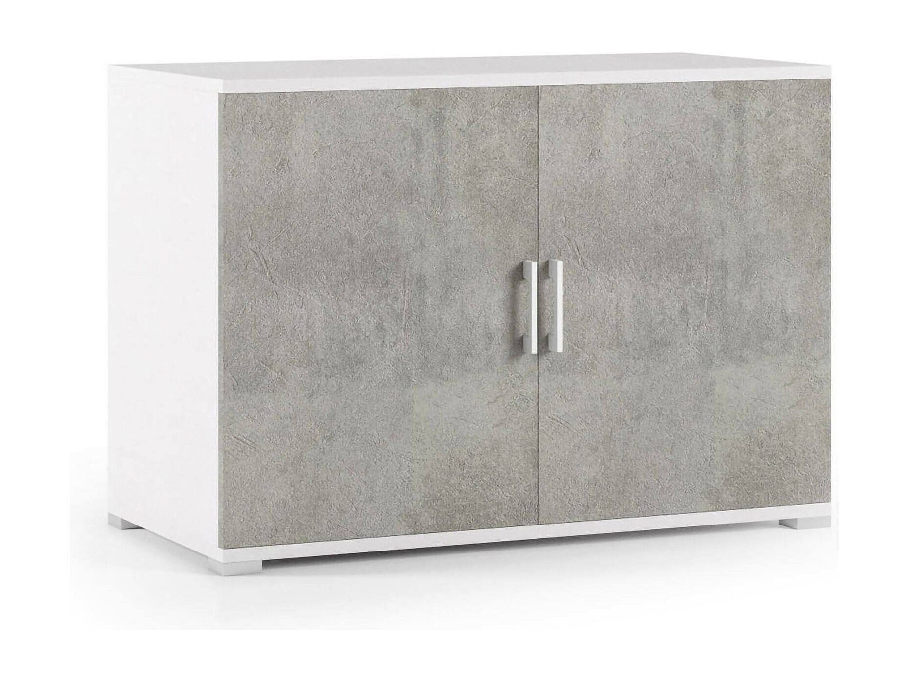 ARMARIO MULTIUSOS 2 PUERTAS - Mueble lineal de 2 puertas batientes con estante, Mueble de entrada, Zapatero moderno, 100% Made in Italy, 90x45h66 cm, Cemento y Blanco. ESTRUCTURA Y USO - Armario moderno, perfecto para guardar ordenadamente tus objetos, puede utilizarse cómodamente como práctico zapatero, como armario o como mueble de dormitorio - Equipado con dos prácticas puertas con tirador para facilitar la apertura, en el interior tiene 1 estante ajustable. MADE IN ITALY - El artículo se produce en Italia, utilizando los mejores materiales y la más alta calidad y atención al detalle - El cuidado de los procesos de producción es sinónimo de fiabilidad, resistencia y refinamiento - La Certificación Made in Italy es una garantía Cumplimiento total de la normativa de la Unión Europea. PRÃCTICO E INNOVADOR - Estructura de líneas simples y pequeñas dimensiones para quienes no disponen de grandes espacios, esta característica la hace perfecta para cada uso y para cada estancia de tu hogar, para poder utilizarla de diferentes maneras - Práctico ahorro de espacio. CARACTERÃSTICAS TÉCNICAS - Construido íntegramente en panel de melamina E1 termoestructurado, es resistente a impactos y rayones, y duradero en el tiempo - Limpieza fácil y rápida gracias al material que lo compone - Se entrega desmontado con kit de montaje y manual de instrucciones - Cuidado especial y atención al embalaje, resistente y apta para el transporte - Madera certificada FSC, el espesor de 18 mm garantiza una alta resistencia de los materiales, un alto resultado estético gracias al acabado de muy alta definición - Dimensiones en cm - 90x45x66