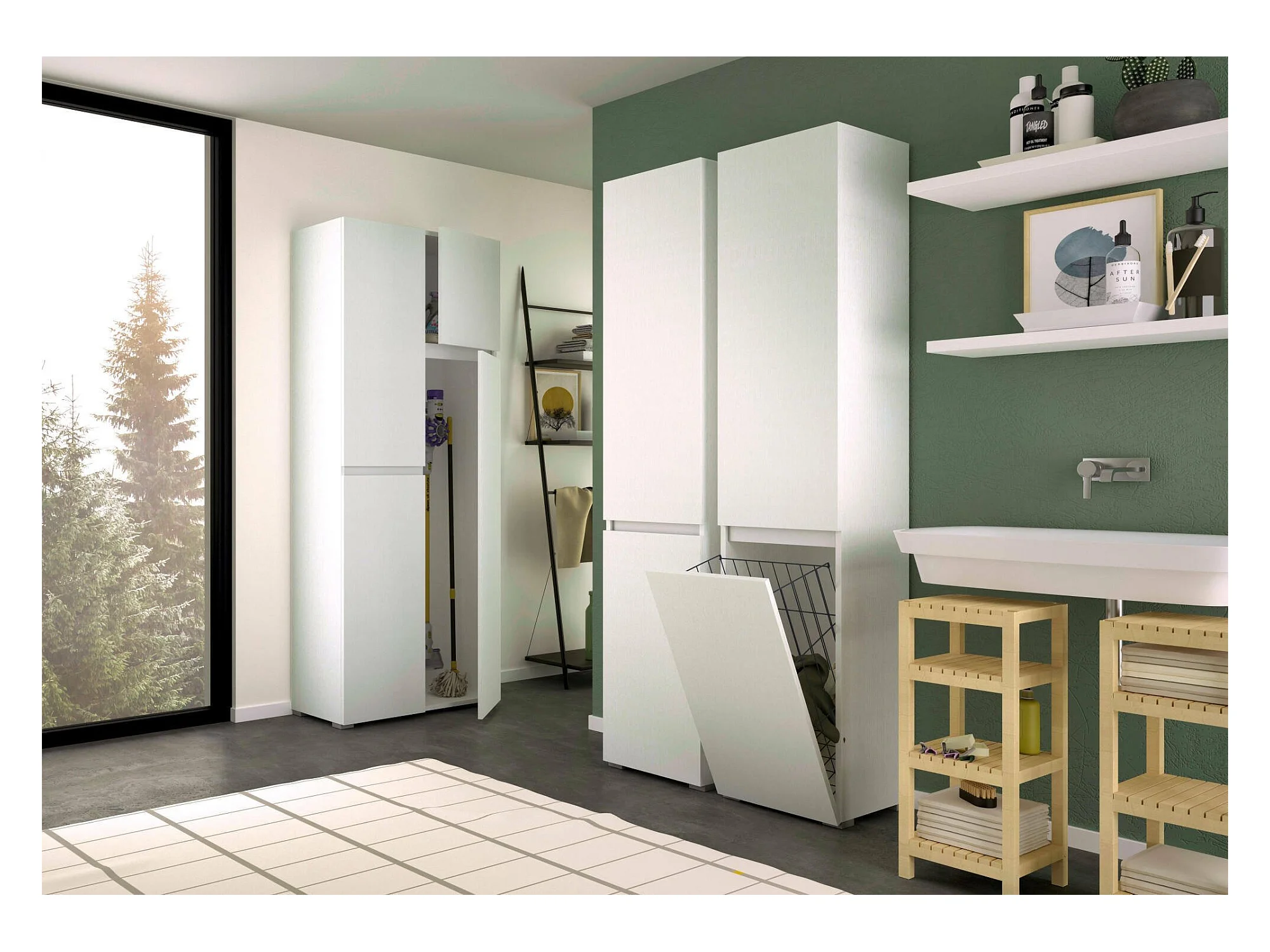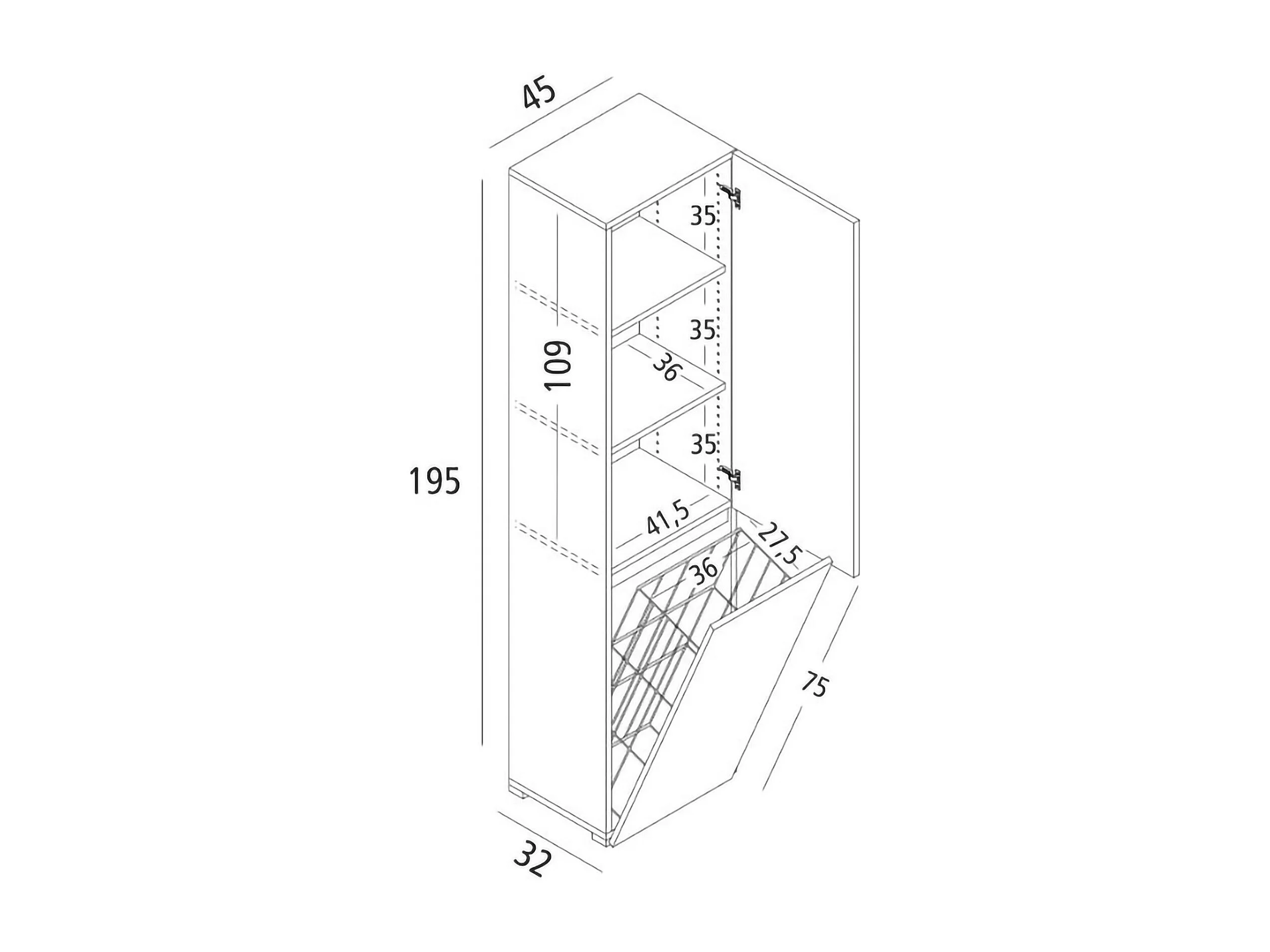 Armario multiusos de 2 puertas Dasteggian, mueble para lavandería de 2 puertas, Columna de baño con cesto para la ropa, 100% Made in Italy, 45x37h195 cm, Blanco