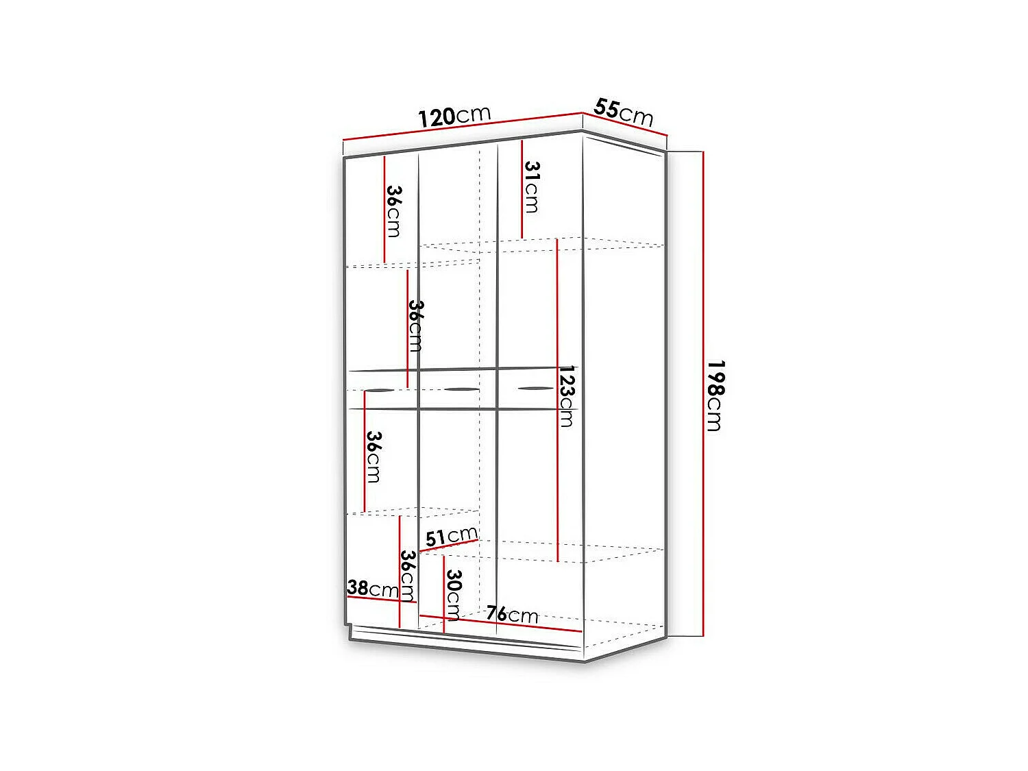 Armario Salmere 108, Blanco|Gris brillante|Blanco brillante, 198x120x55cm