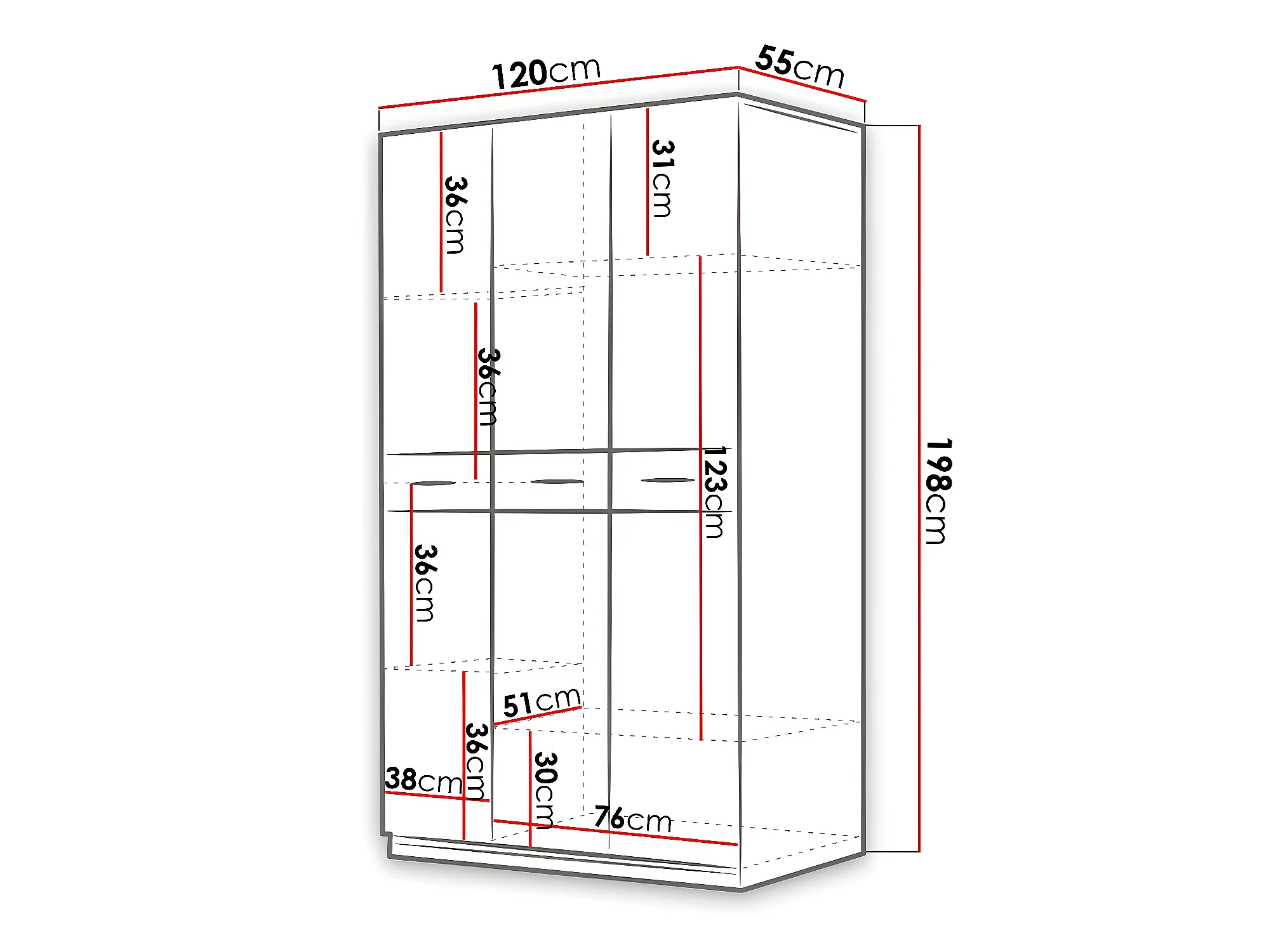 Armario Salmere 107, Blanco|Blanco brillante, 198x120x55cm, Número de estantes: 6