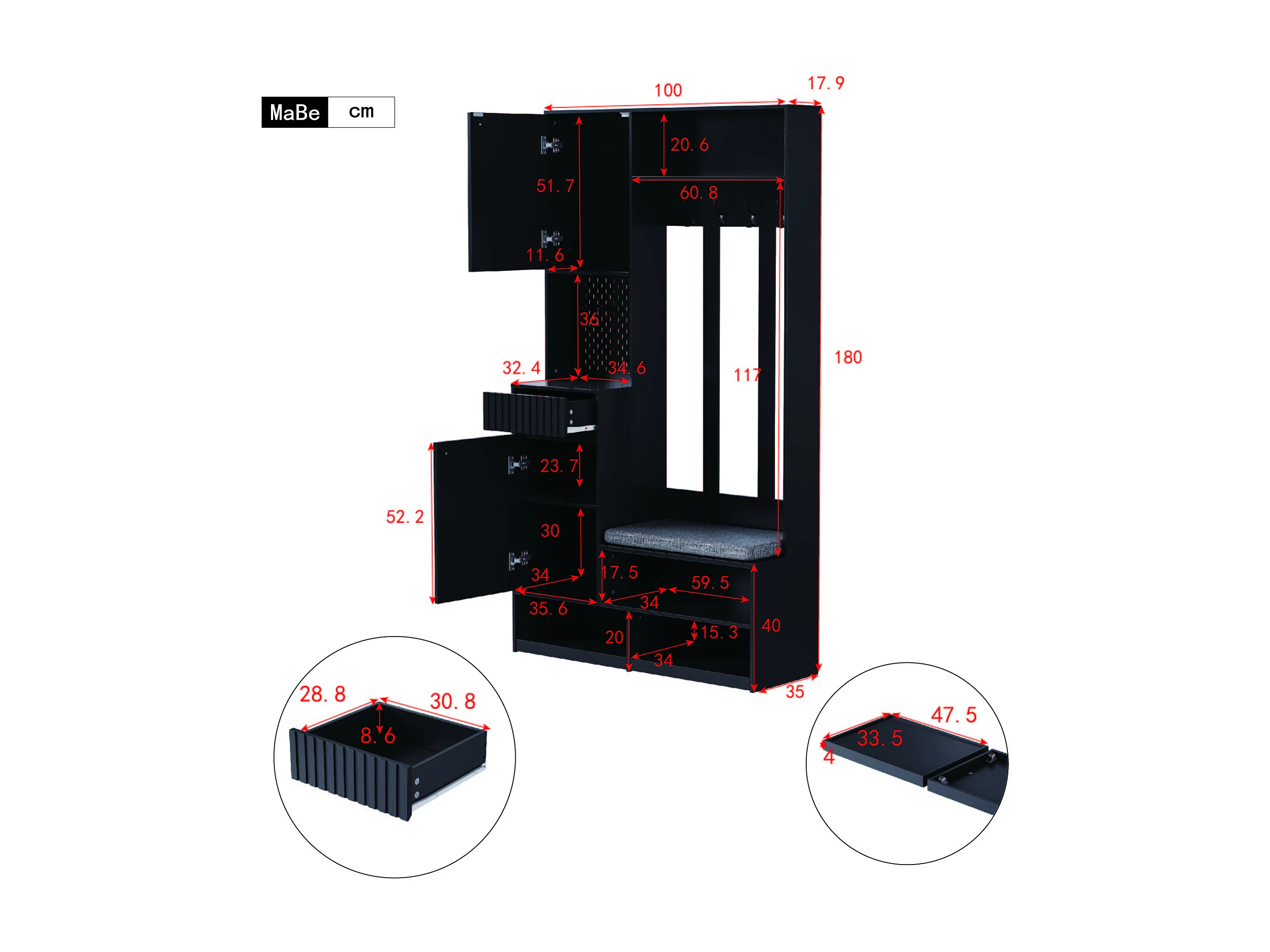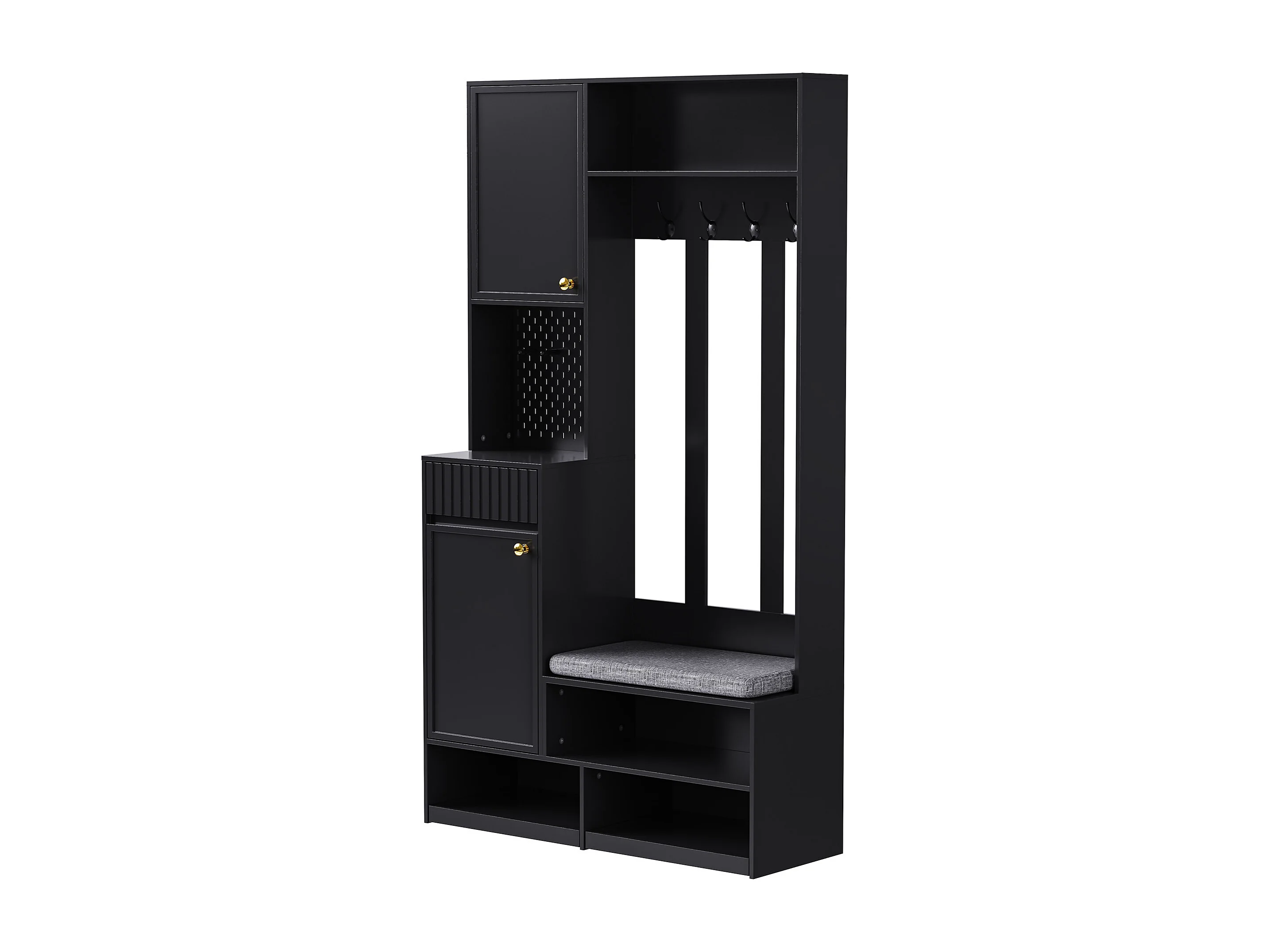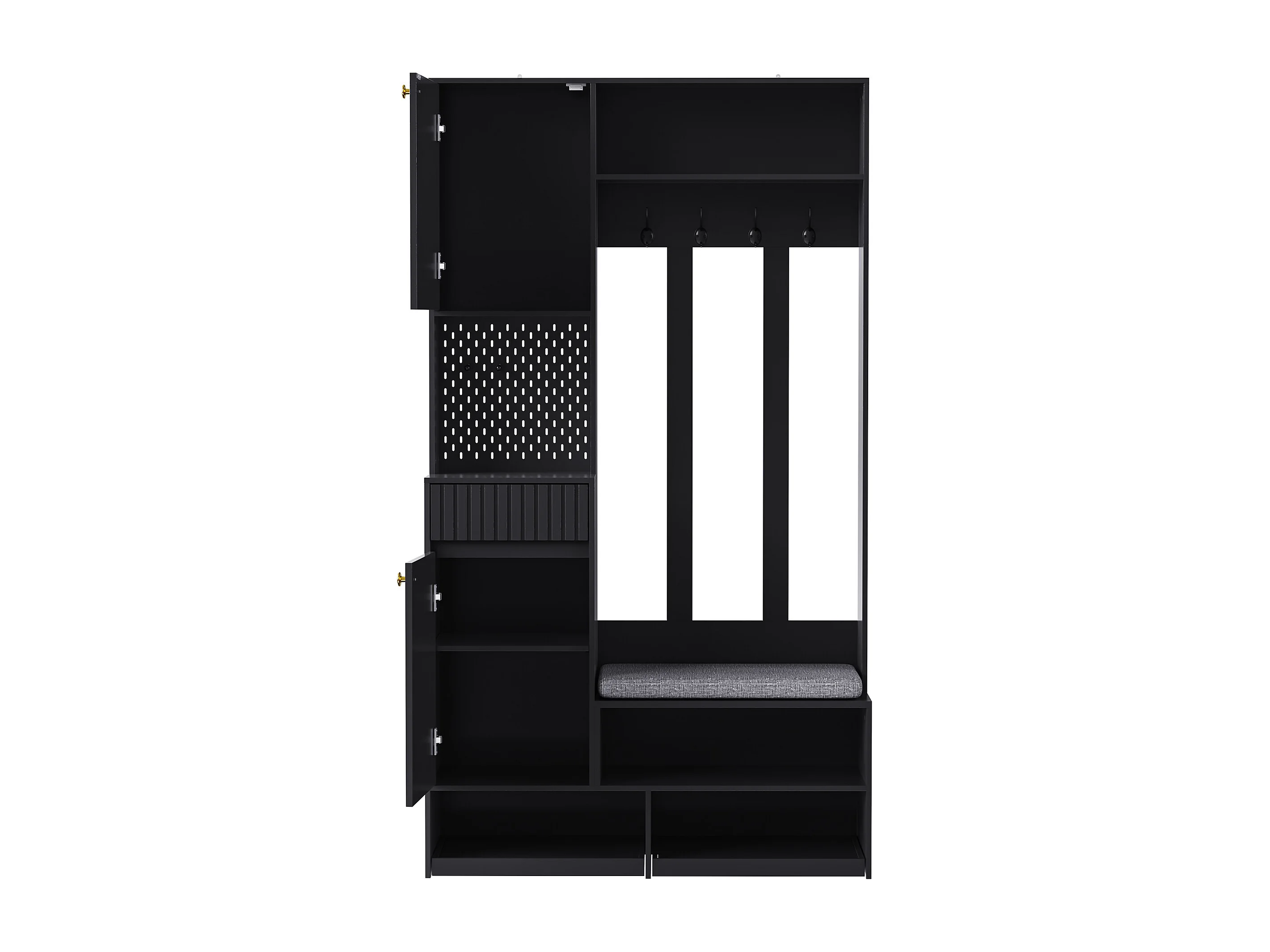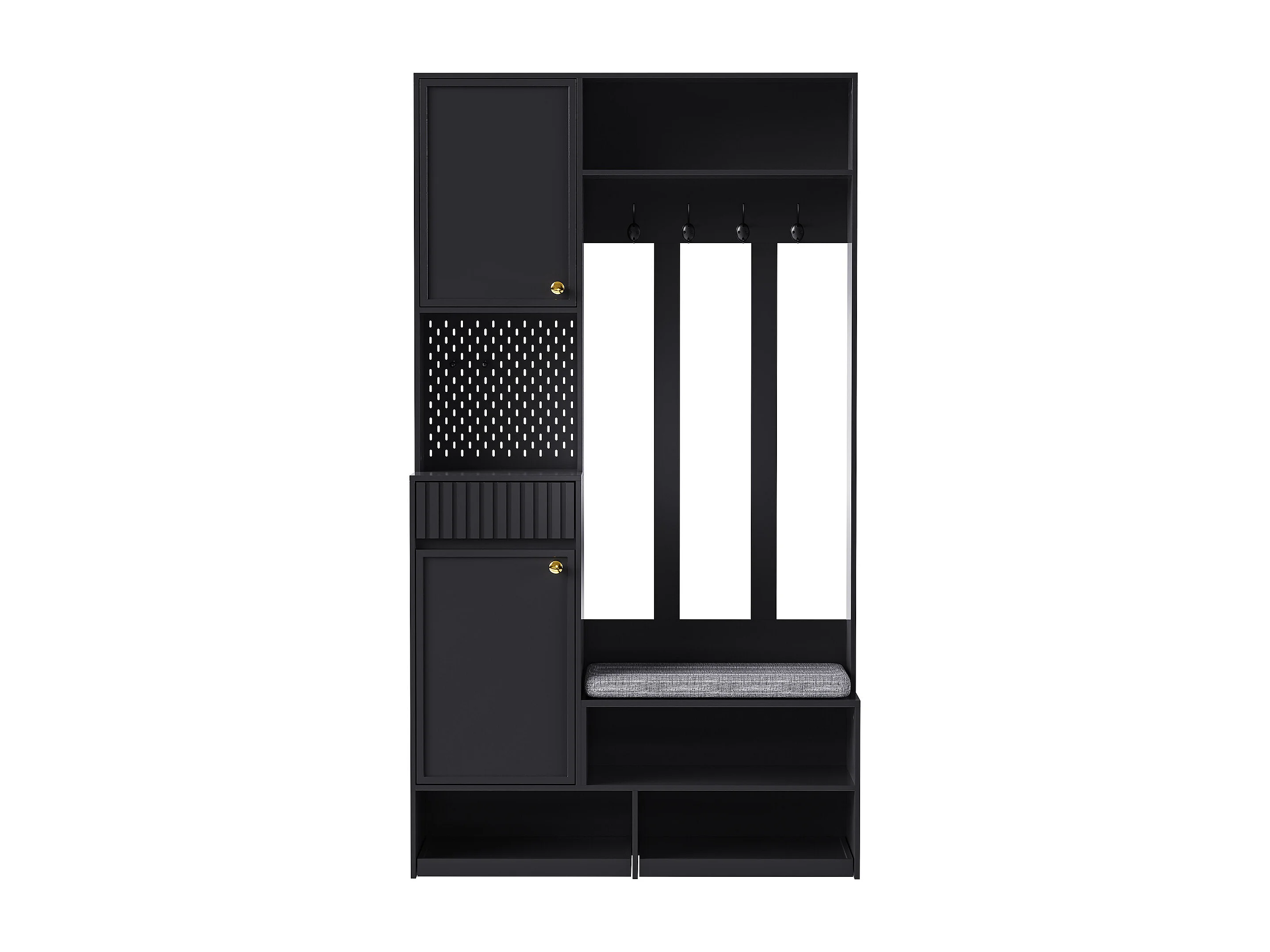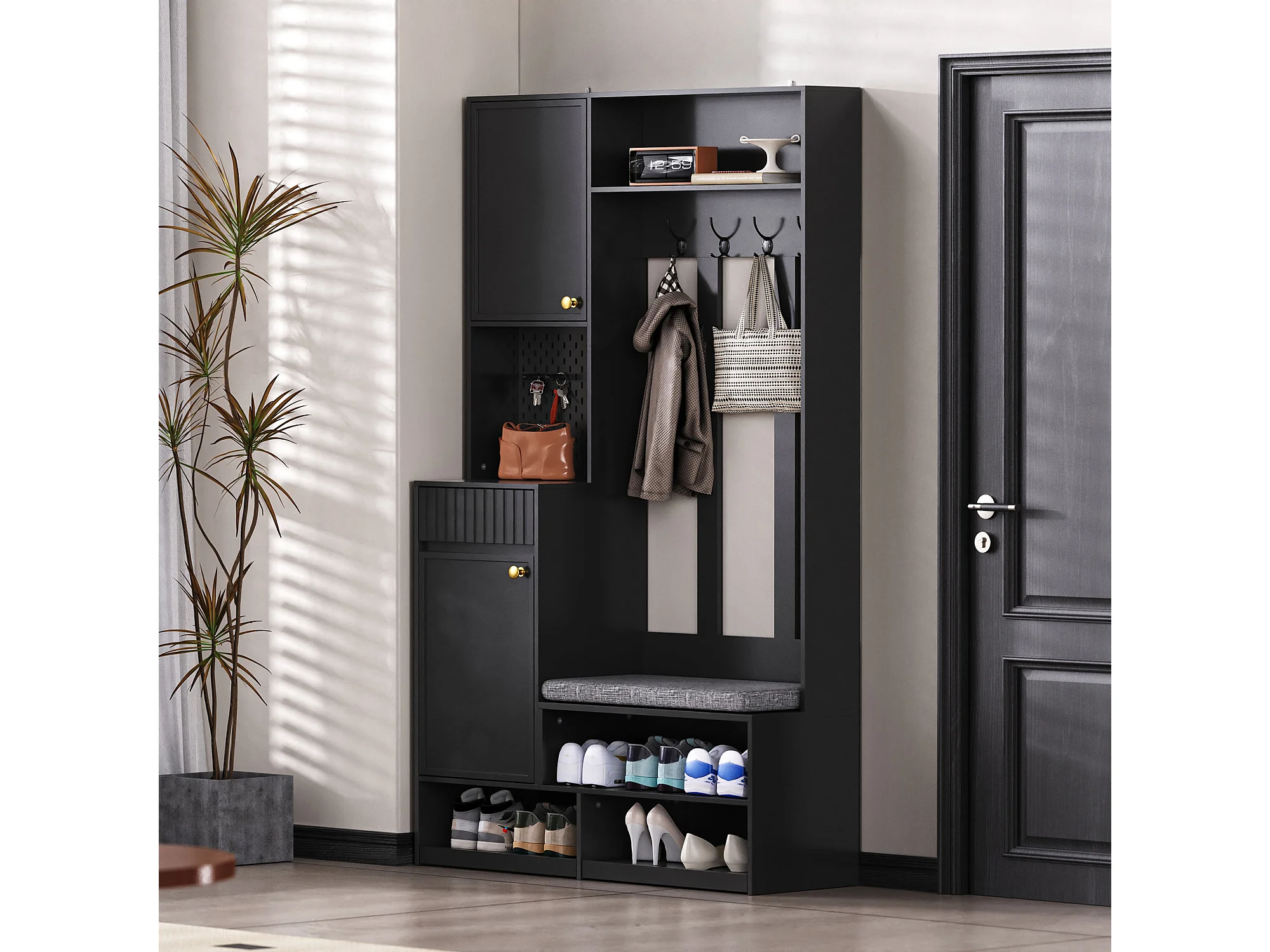 Armario negro con 2 puertas, 1 cajón, 4 ganchos y 1 banco, 100x30x180cm