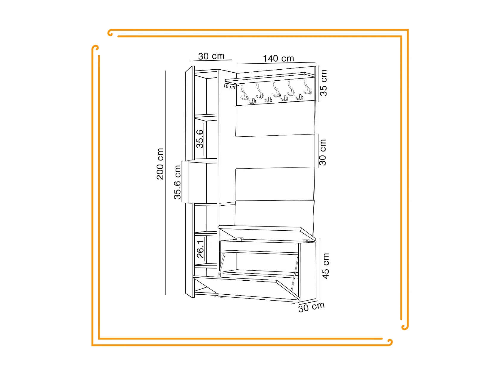 Armario para el recibidor con asiento, perchero, panel tapizado en Dorado Craft y Negro