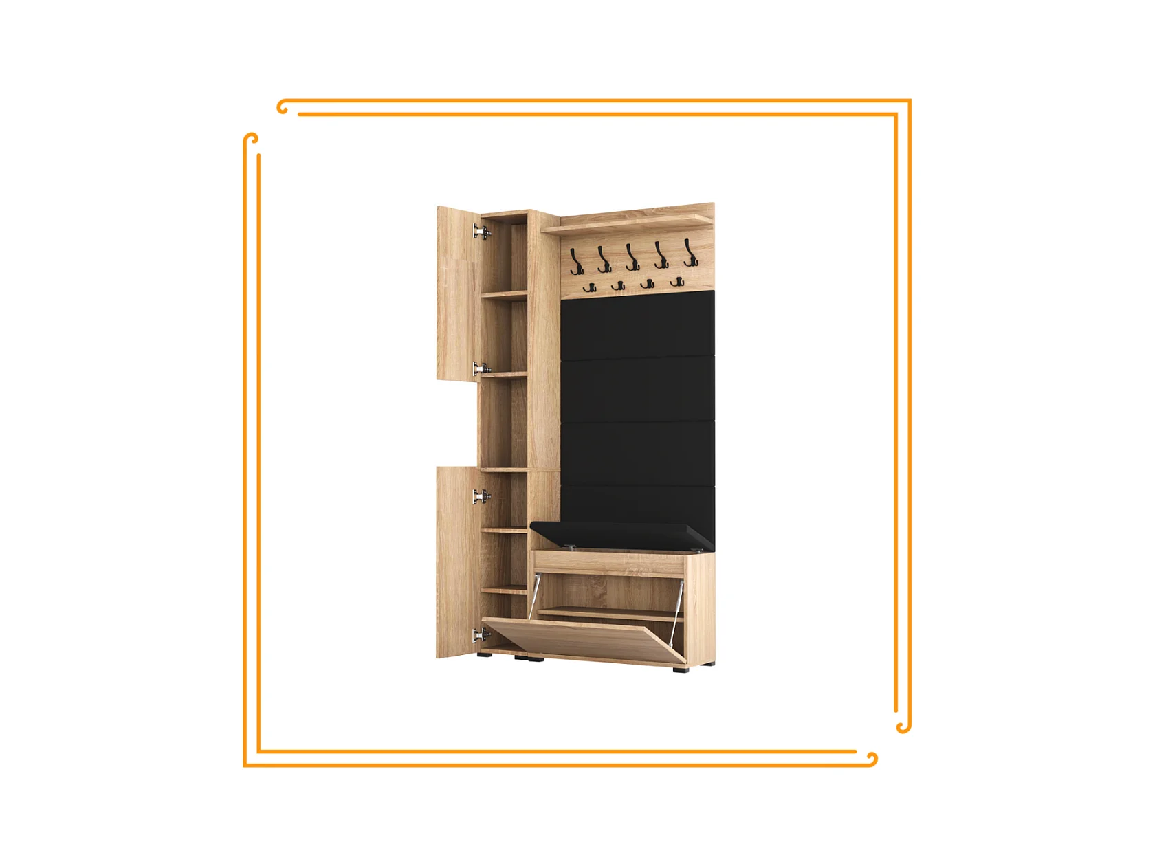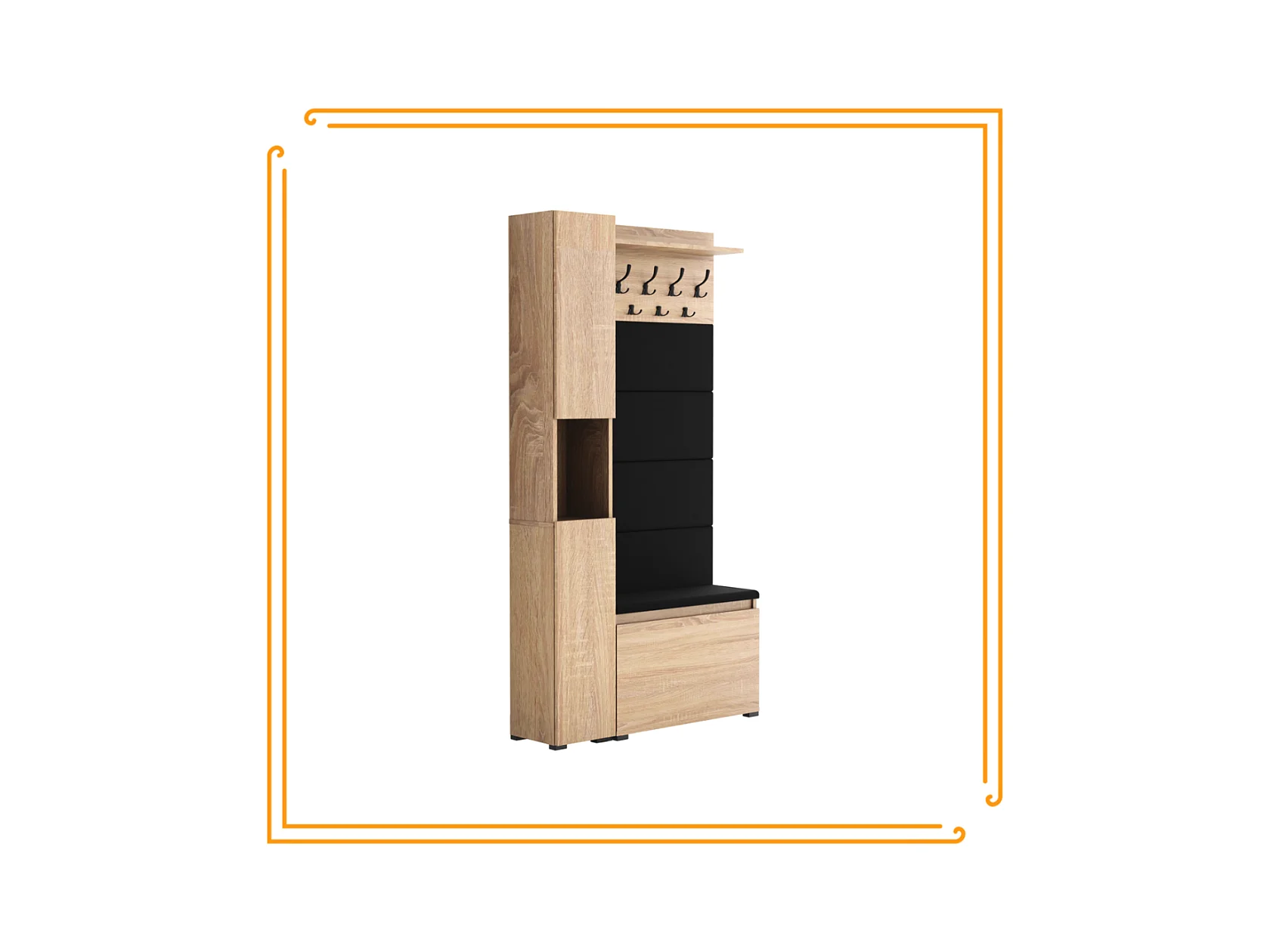 Armario para el recibidor con asiento, perchero, panel tapizado en Roble Sonoma