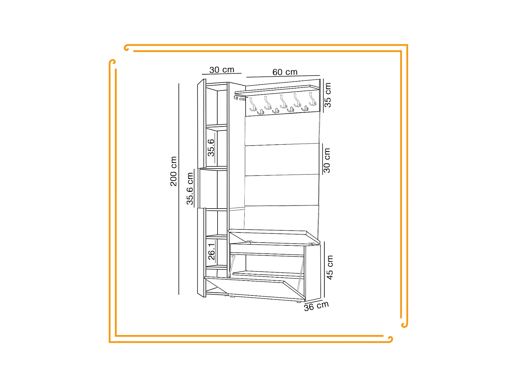 Armario para el recibidor con asiento, perchero, panel tapizado en Roble Sonoma
