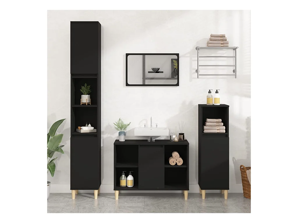 Armario para lavabo madera contrachapada negro 80x33x60 cm