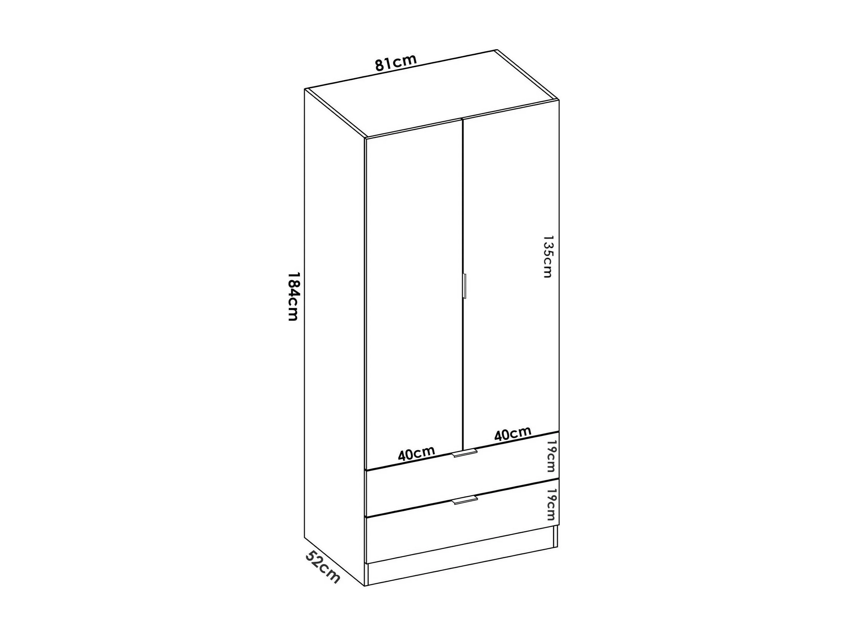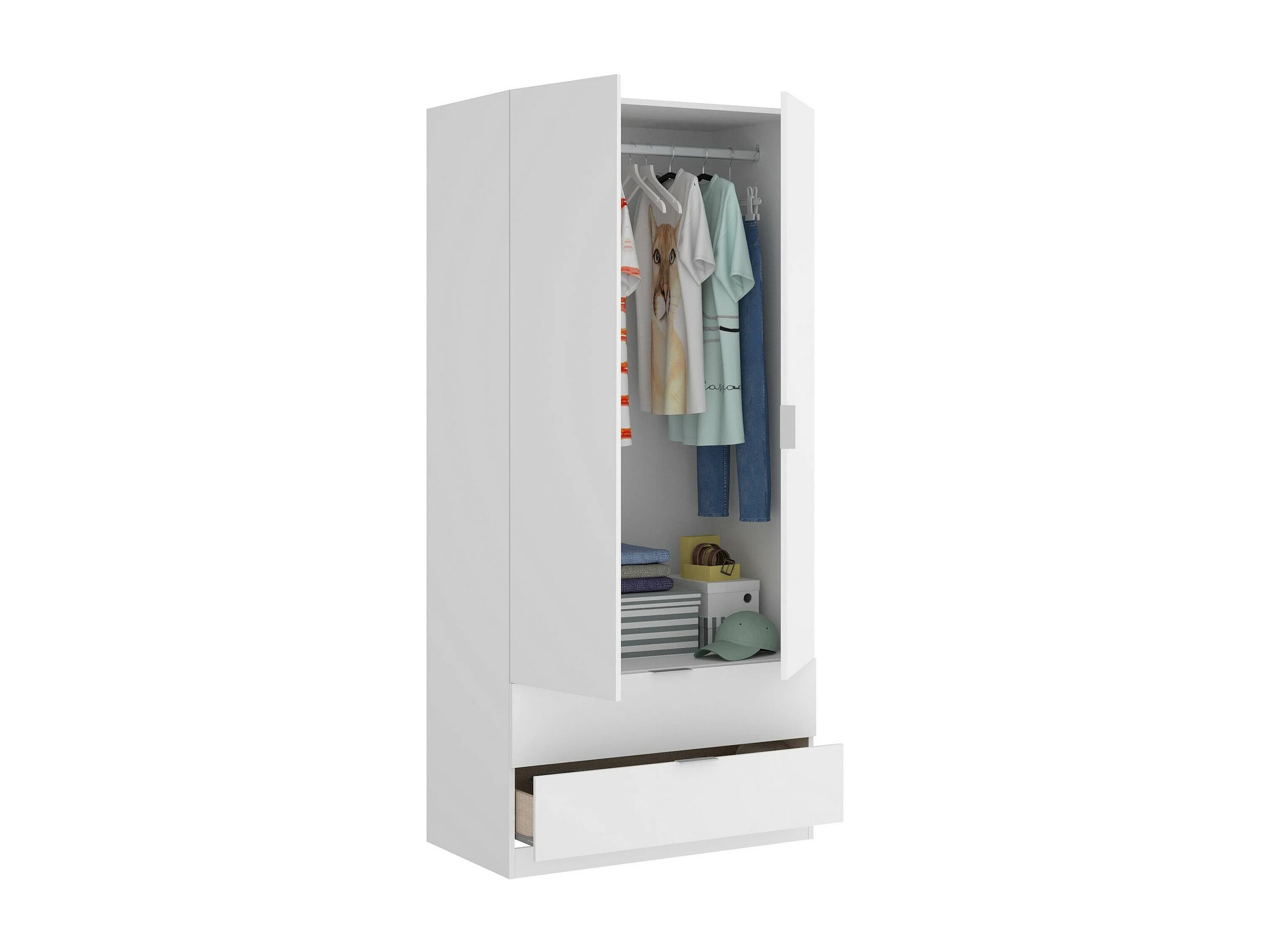 Armario Pisanino, Perchero para dormitorio, Armario con 2 puertas batientes y 2 cajones, 81x52h184 cm, Blanco