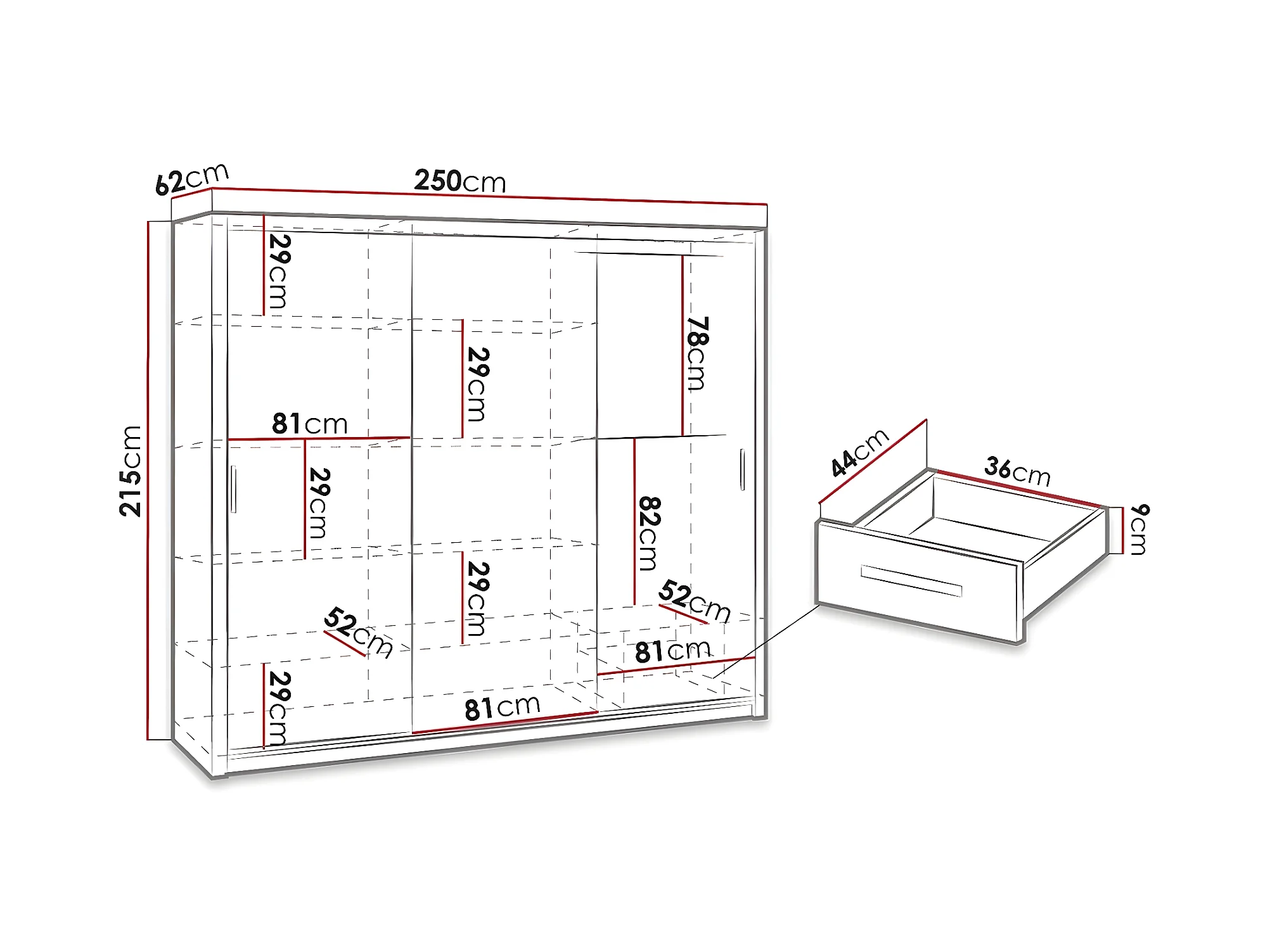 Armario Catromi 111, Roble del Monastery, 215x250x62cm, Puertas de armario: Correderas