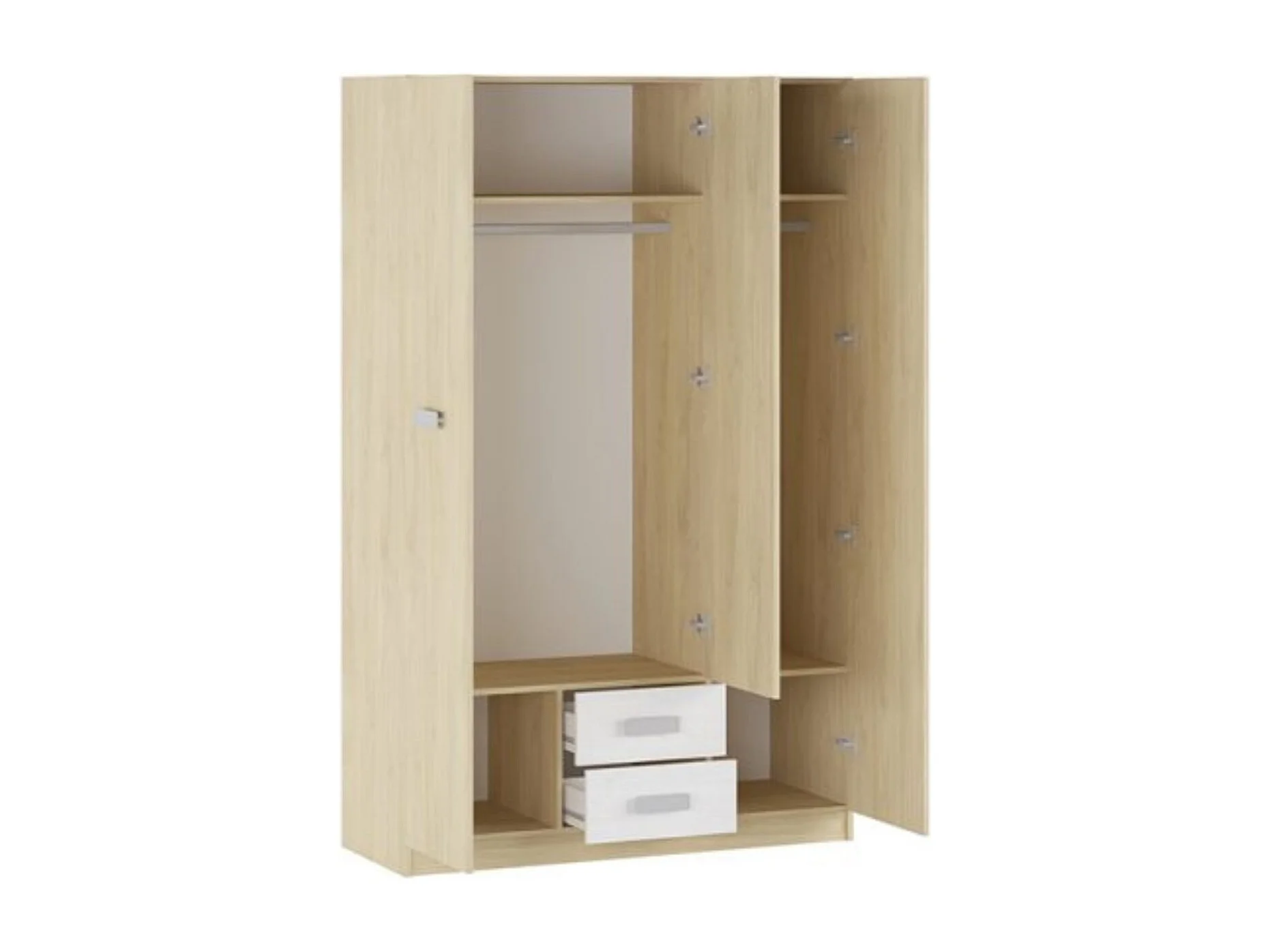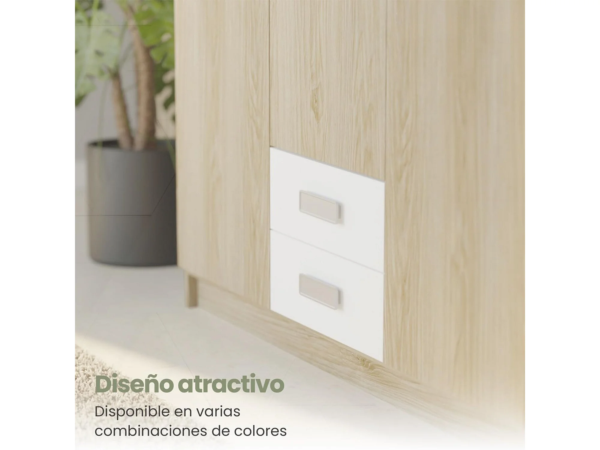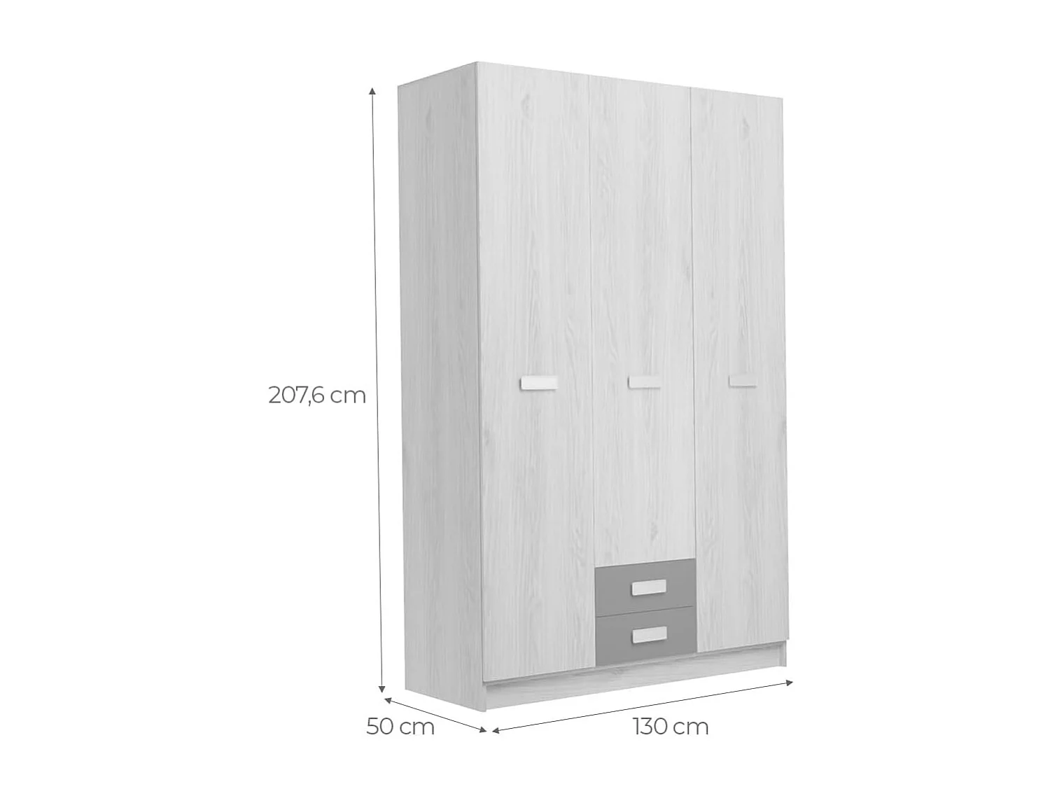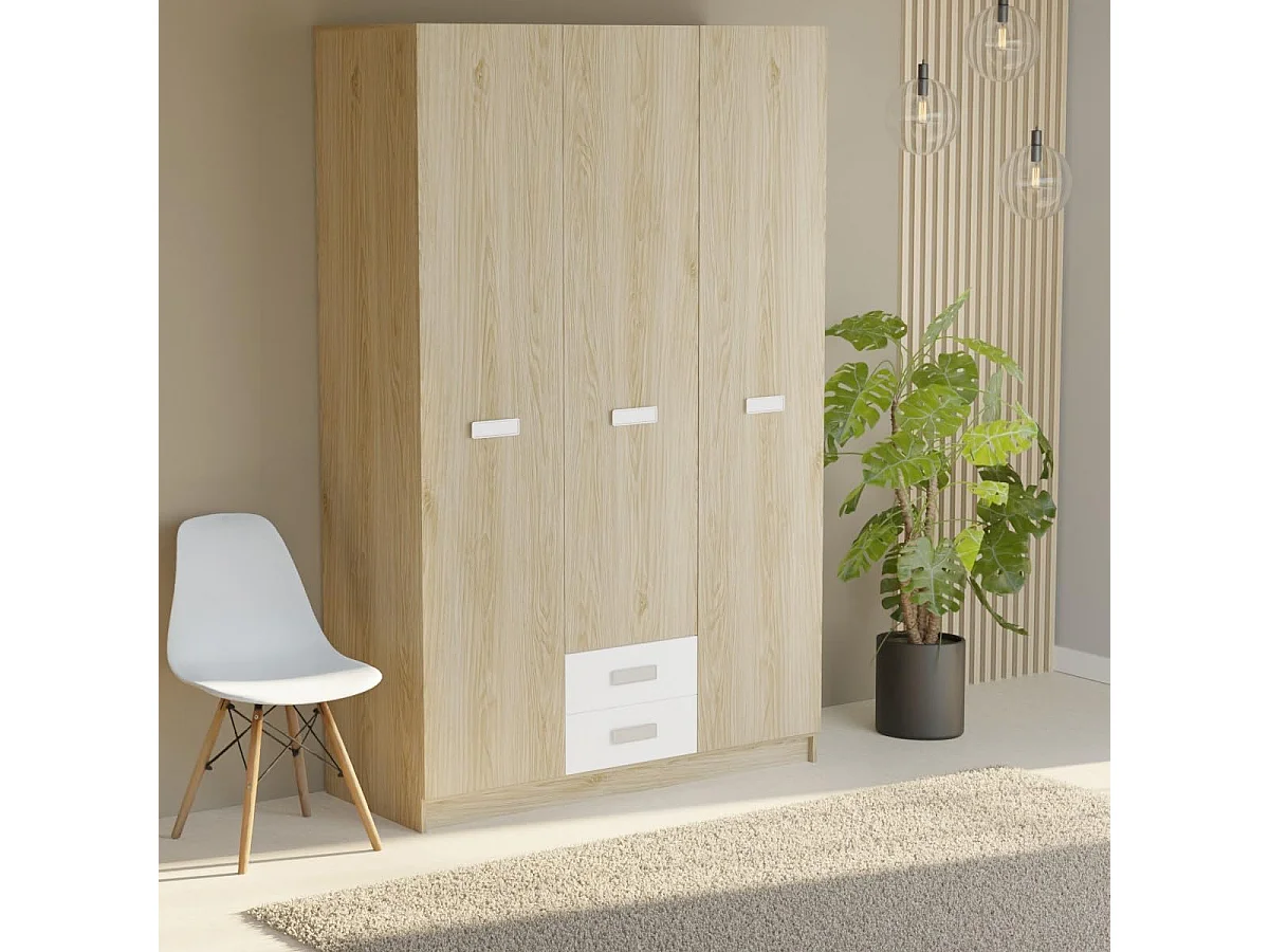 Armario Puccini -Andersen, 3 Puertas, Altillo y 2 Cajones, Perfecto para Dormitorios Matrimoniales e Infantiles, Madera, 130x207,6x50 cm.